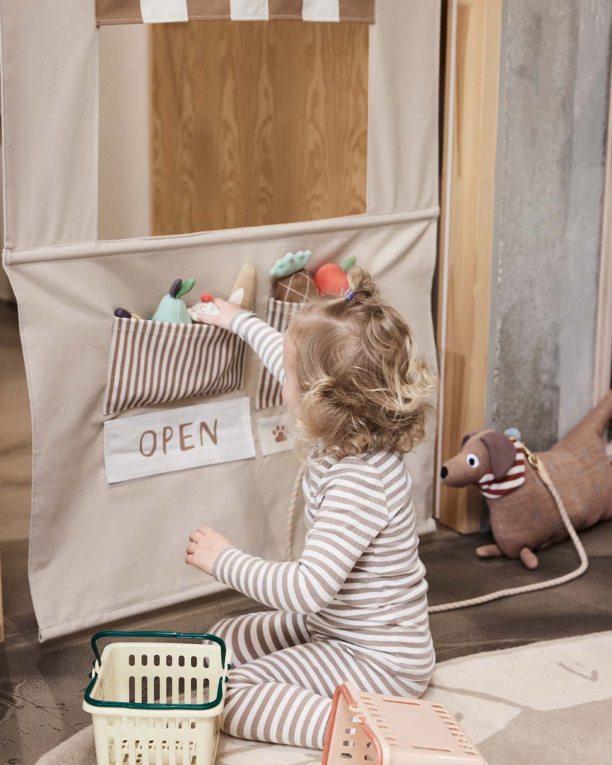 Yummy Mini Store Leksak från OYOY MINI är den perfekta leksaken för barn som älskar att låta fantasin flöda fritt! Den är ett måste för barnrummet och erbjuder oändliga lekmöjligheter. Häng den enkelt i en dörröppning med hjälp av de praktiska öglorna eller använd en teleskopstång för enkel upphängning. Denna interaktiva leksak förvandlar lekstunderna till en spännande mataffär där barnen kan lagra varor i hyllorna och leka med de utbytbara öppet/stängt-skyltarna, vilket främjar både kreativitet och rollspel. Med sin charmiga design i flera färger passar den perfekt i ett lekfullt och modernt barnrum. Yummy Mini Store är inte bara en leksak, den är en fantastisk möjlighet för barn att utveckla sin problemlösning och sociala färdigheter genom att leka affär. Gör dig beredd på många timmar av skoj och skratt!