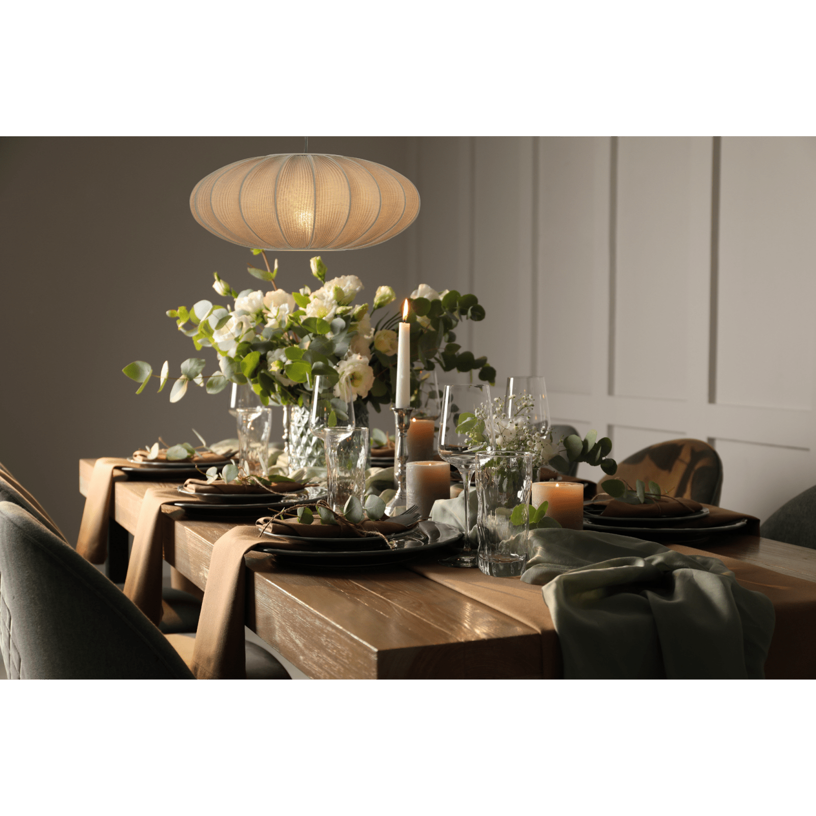 Mamsell taklampa är klädd med fin-plisserat stretchtyg som ger ett behagligt, lite dämpat ljus. Mamsell är ett populärt val för sovrummet eller vardagsrummet men ger även härligt ljus över matbordet.