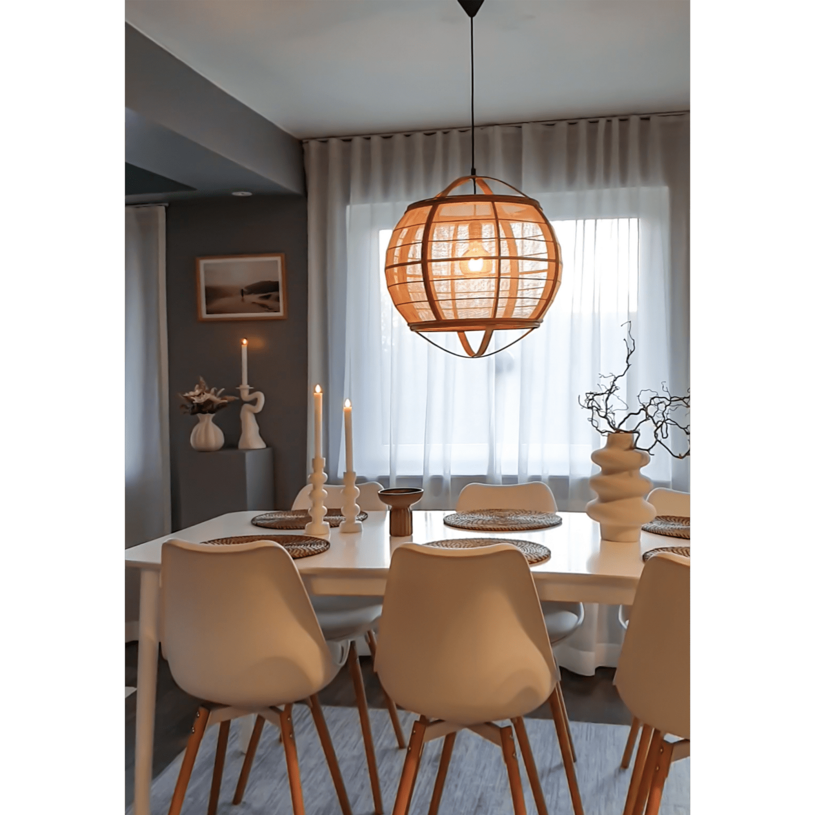 Ge ditt hem en avslappnad och naturlig känsla med taklampan BORNEO. Med sin rustika design och tropiska vibbar blir BORNEO en naturlig fokuspunkt i rummet. Varje lampa är handgjord av naturligt trä och glesvävt linnetyg, vilket ger varje exemplar en helt unik karaktär.