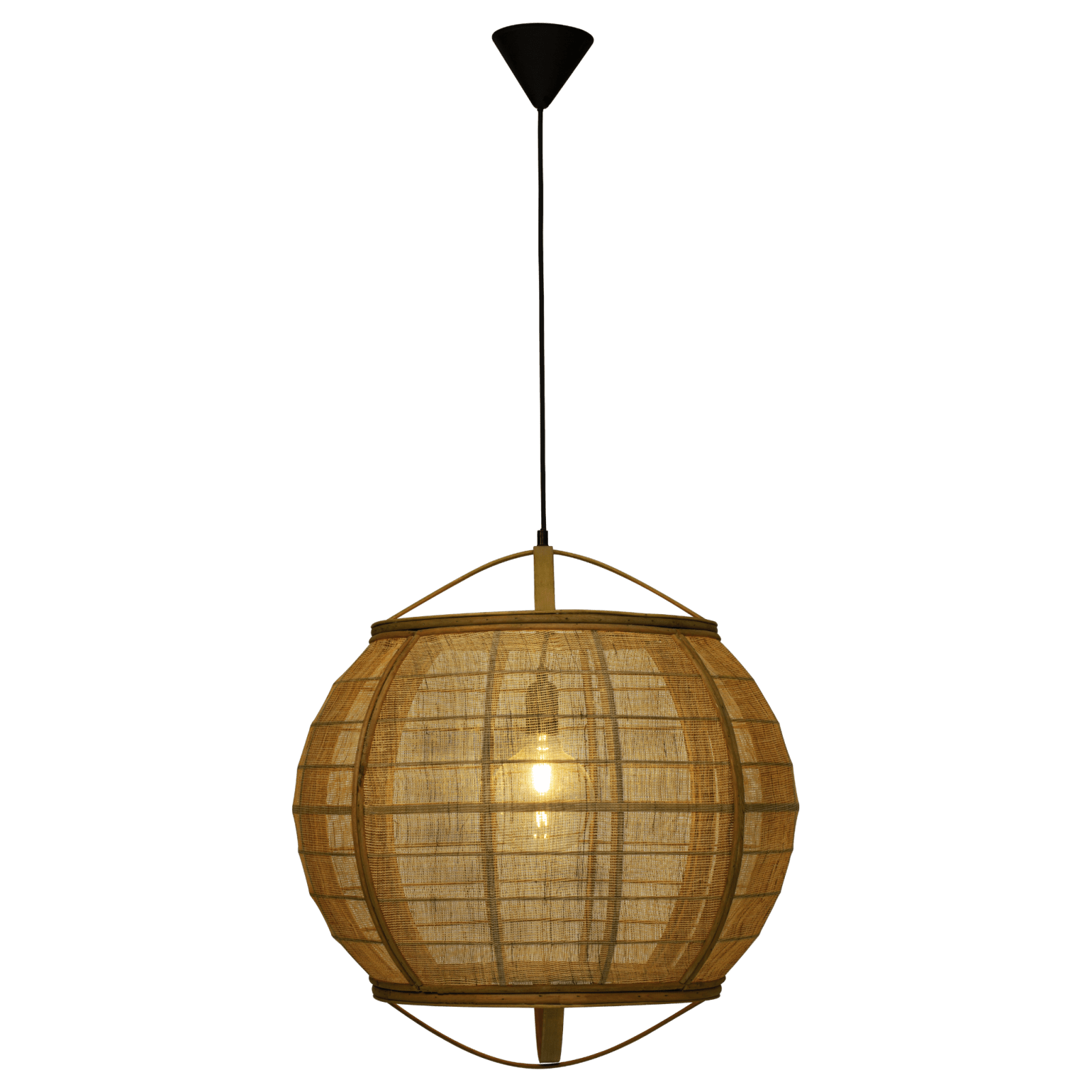 Ge ditt hem en avslappnad och naturlig känsla med taklampan BORNEO. Med sin rustika design och tropiska vibbar blir BORNEO en naturlig fokuspunkt i rummet. Varje lampa är handgjord av naturligt trä och glesvävt linnetyg, vilket ger varje exemplar en helt unik karaktär.