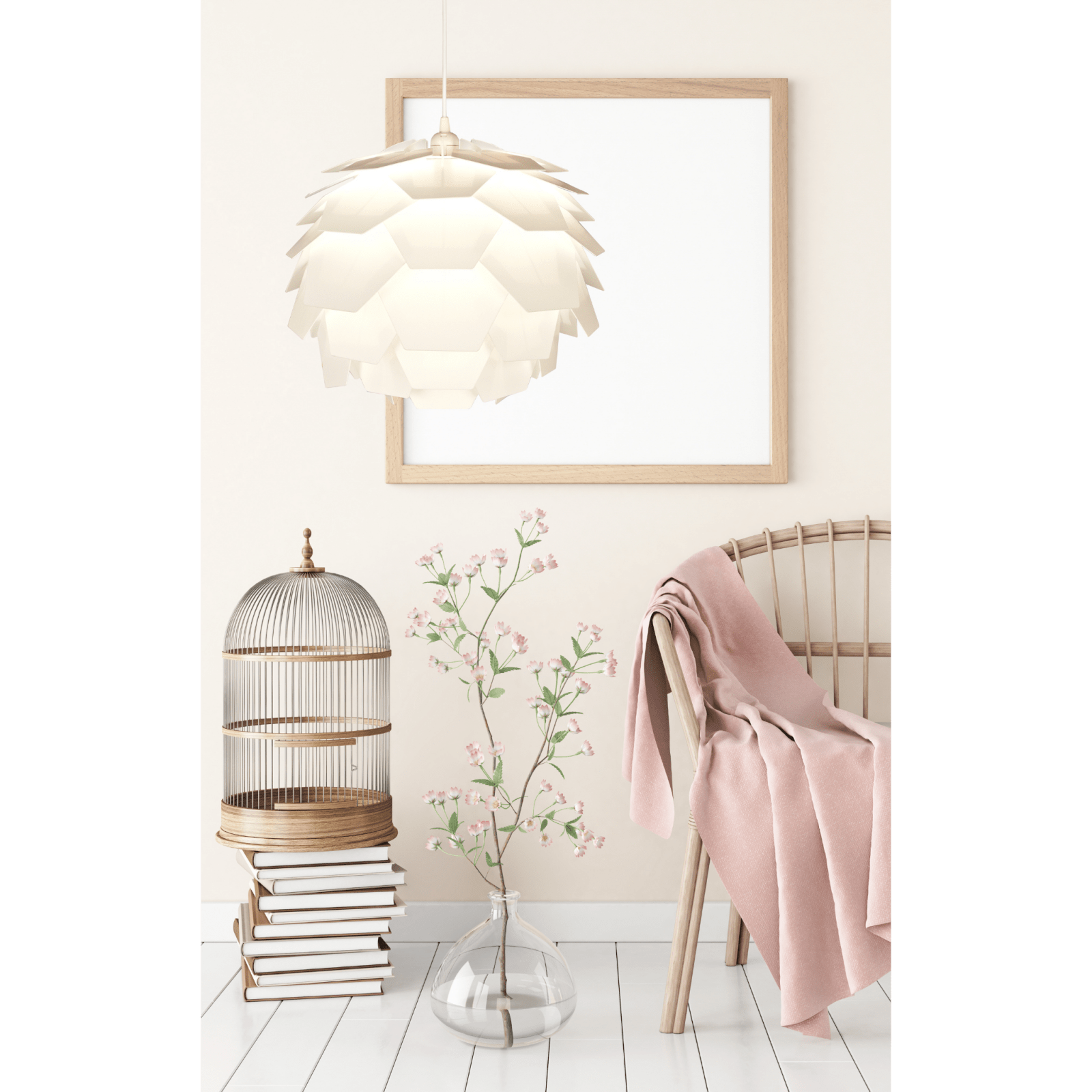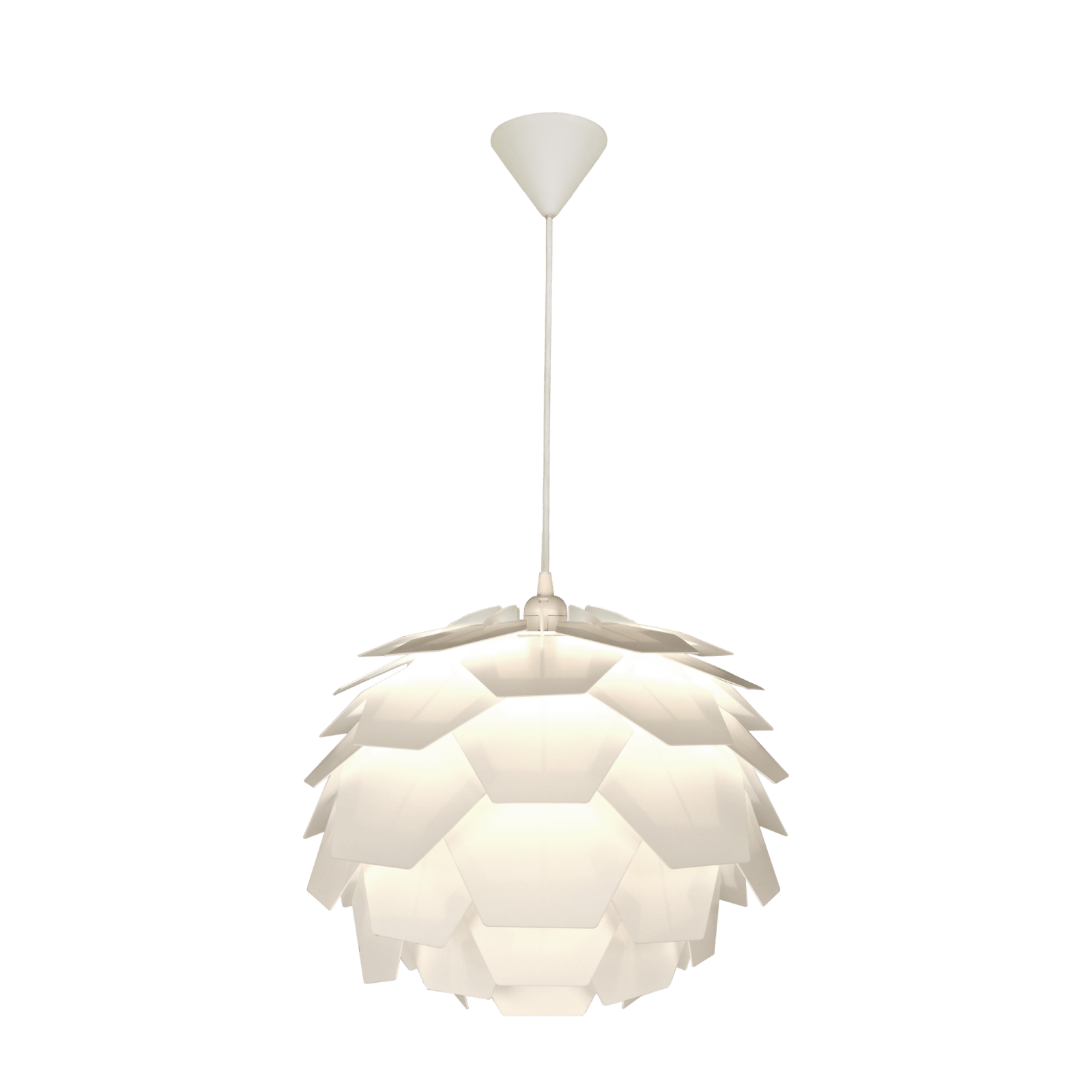 Carpatica taklampa i vit plast. Takkoppen är i vit plast för krokupphäng och med kopplingsplint. Max 60W E27, ingår ej. Snygg lampa med en klassisk och tidlös design. Storleken passar bra över såväl matbord som soffbord.