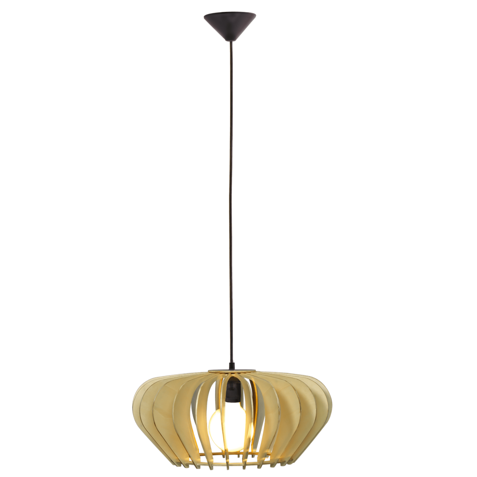 Den eleganta taklampan Calyps består av plywoodlameller i mjukt rundad form som skapar en vacker ljus- och skuggeffekt. Den passar lika bra över köksbordet som i vardagsrummet där du önskar bra allmänljus.