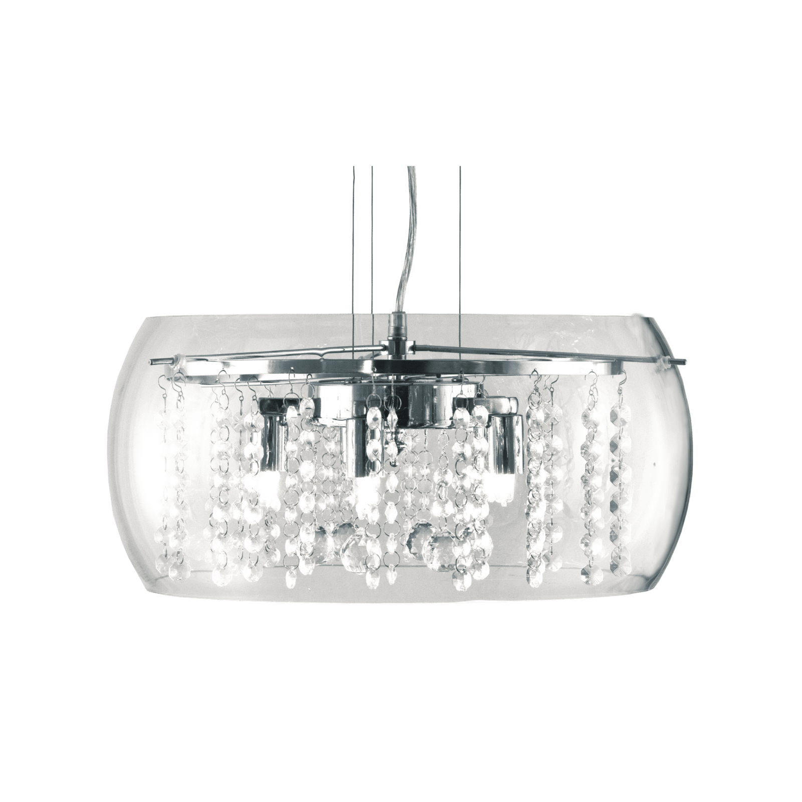 Taklampan Klara har en spännande design med kromad metallstomme och gnistrande akrylprismor omgivna av en klar glaskupa. Ett riktigt blickfång som ger en vacker ljusspridning.
