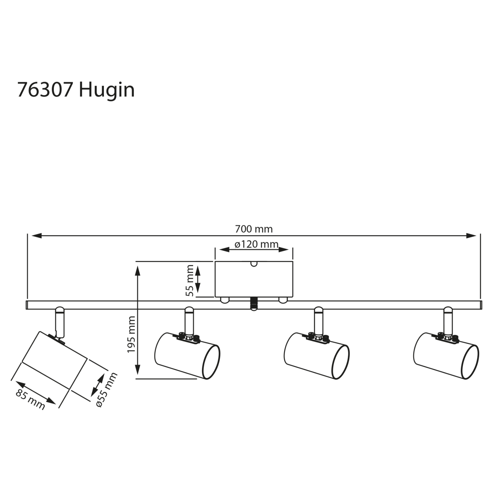 Den praktiska spotlighten Hugin med sina fyra justerbara lamphuvuden gör det enkelt att rikta ljuset enligt dina önskemål. Med sin avskalade design passar den in i de flesta hem. Kan med fördel kombineras med våra andra lampor ur Hugin-familjen.