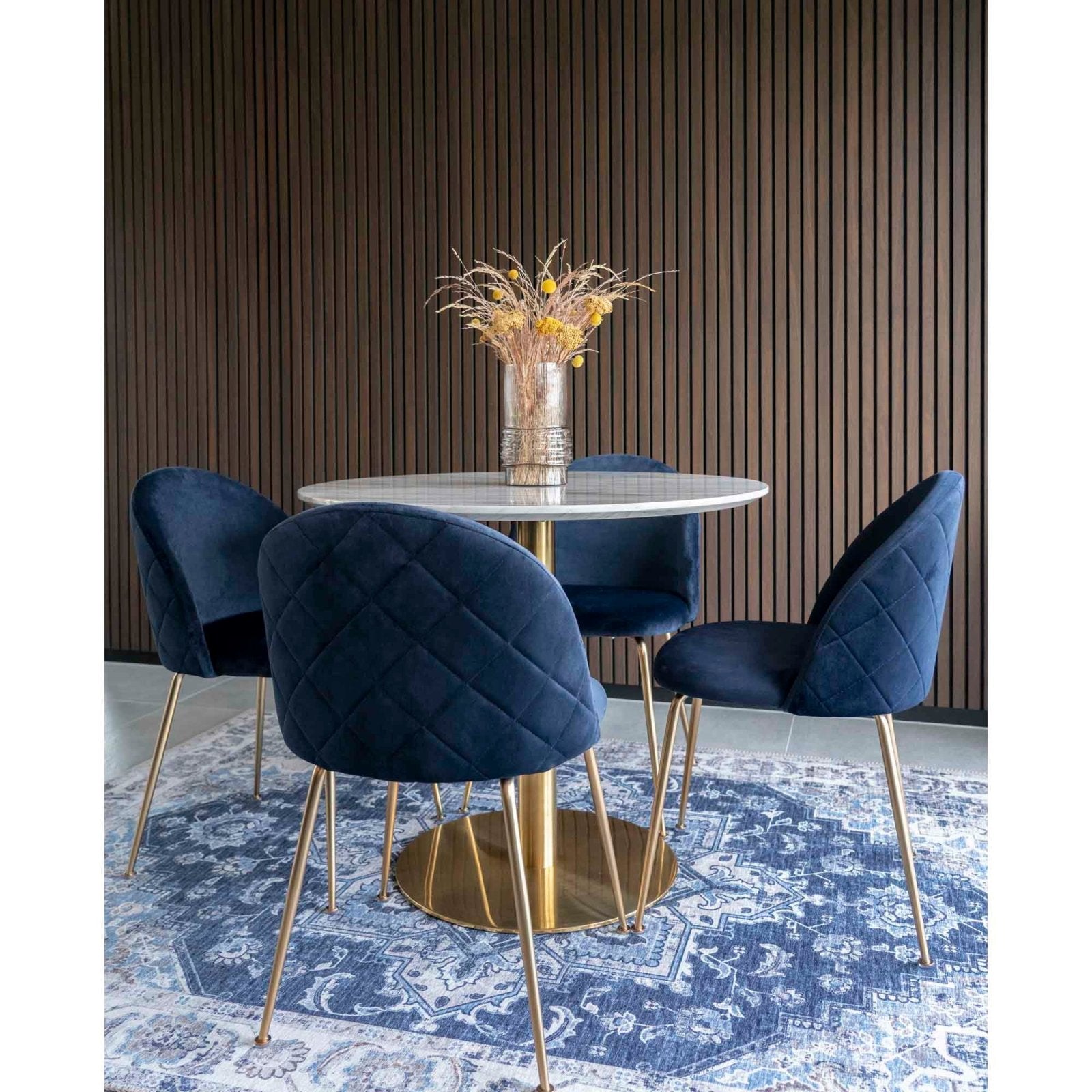 Upptäck elegansen hos Bolzano matbord från House Nordic. Med en stilren marmorerad bordsskiva och en bas i mässing är detta bord verkligen ett blickfång. Perfekt för mindre kök eller matsalar med en diameter på 90 cm som ger gott om plats för fyra personer. Skapa en lyxig känsla i ditt matrum och njut av alla dina måltider vid detta snygga bord. Bolzano kombinerar funktion med stil vilket gör det till en perfekt mittpunkt för alla dina sociala tillställningar. Kvalitet och design i ett – perfekt för dig som älskar modern inredning.