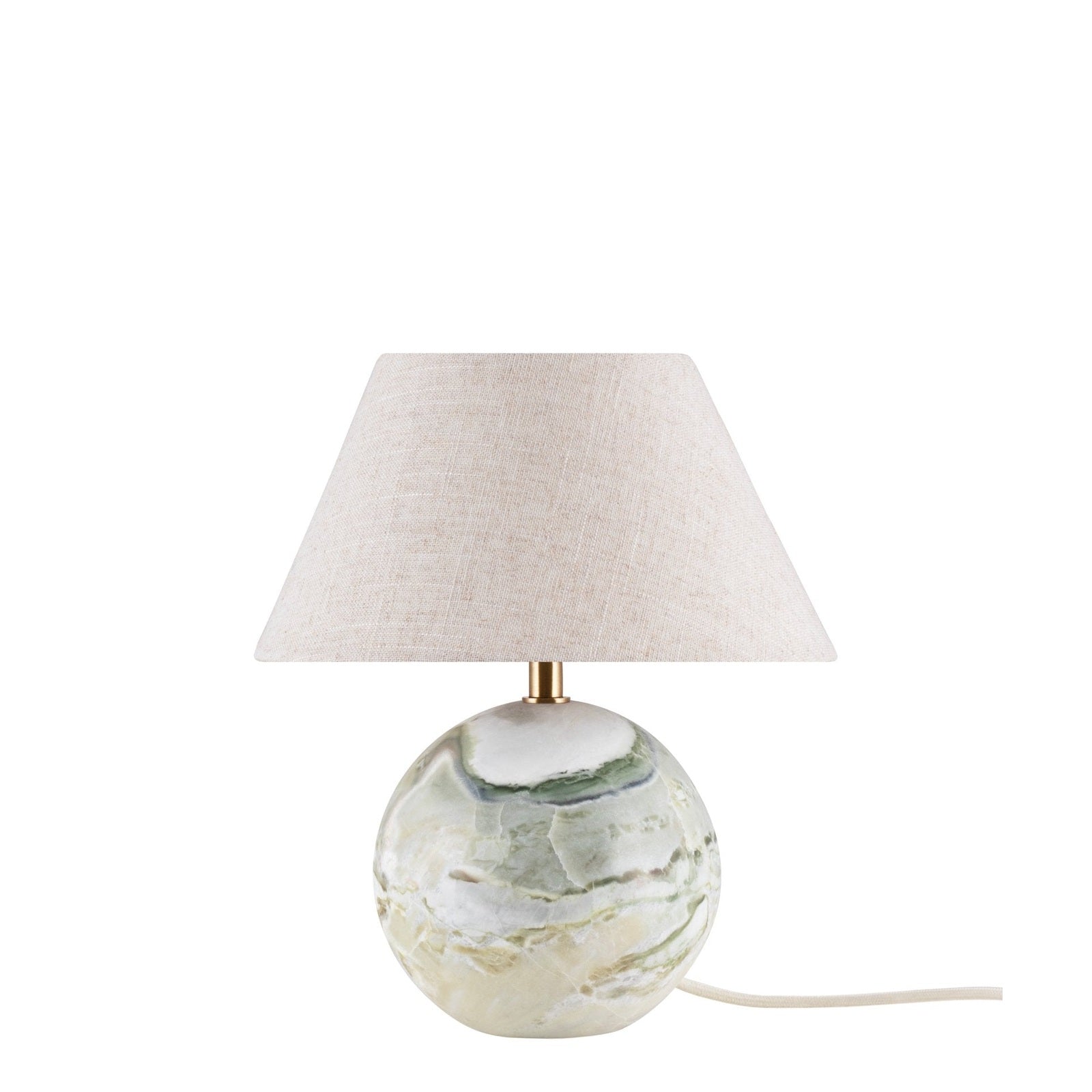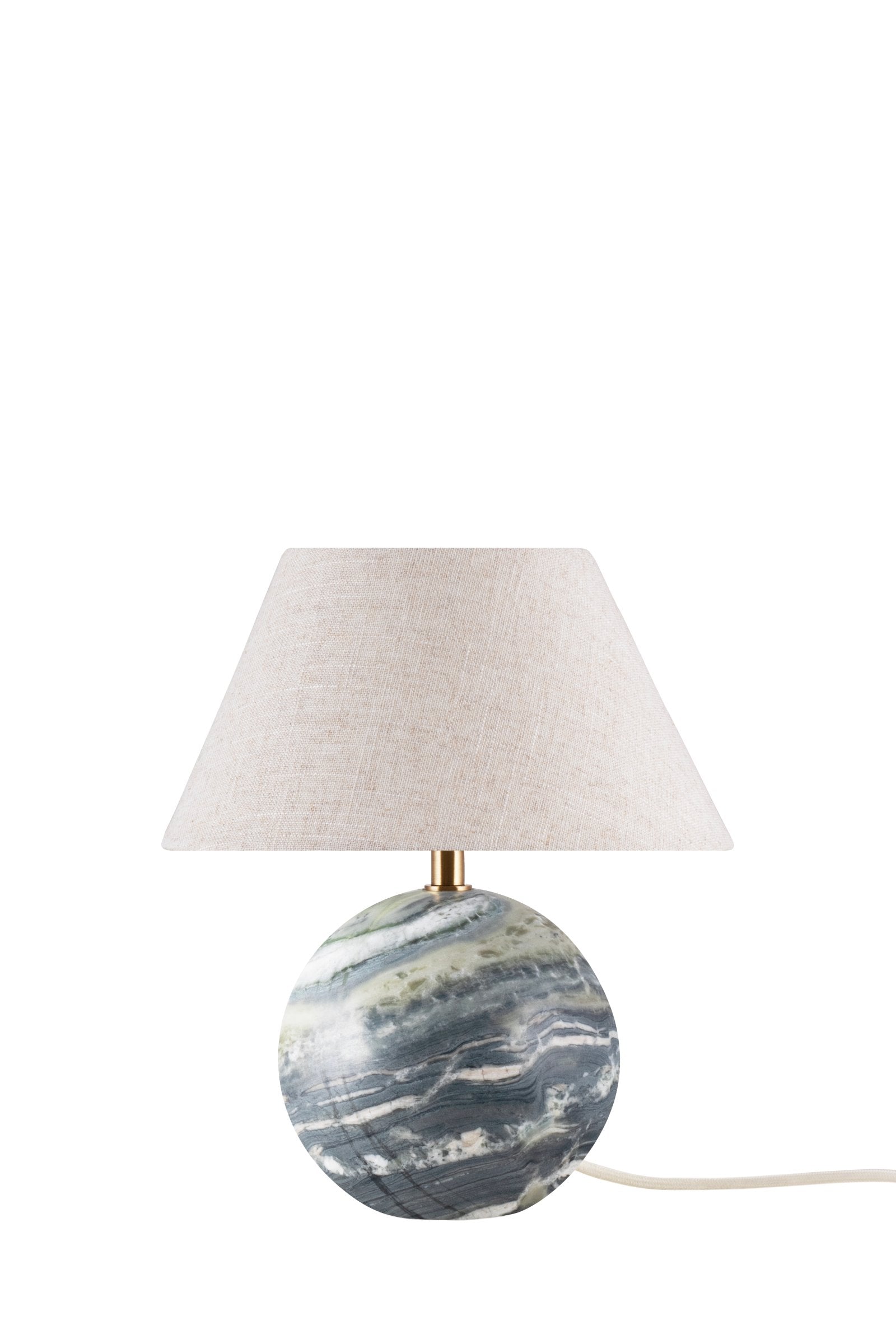 Castello bordslampa har ett elegant uttryck där det exklusiva naturmaterialet i den solida stenfoten skapar en fin kontrast till lampskärmen i vackert linnetyg. Lampan har lamphållare och pinne i äkta mässing, en 200 cm lång beige textilkabel med brytare och stickkontakt. Notera att sten är ett naturmaterial, färg och skiftningar i marmorering varierar och skapar ett unikt mönster för varje lampa, därför kan lampan just du får avvika en aning från bilderna.
