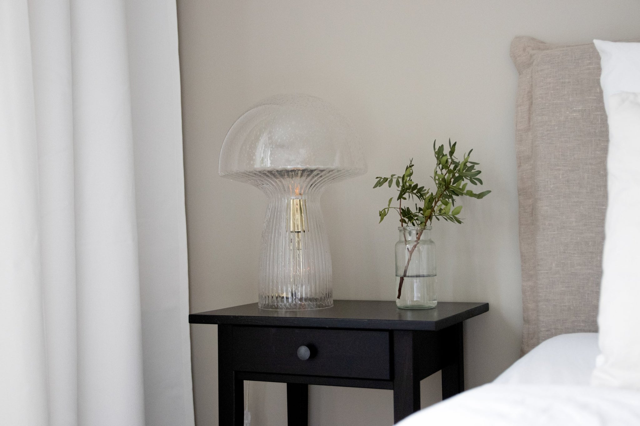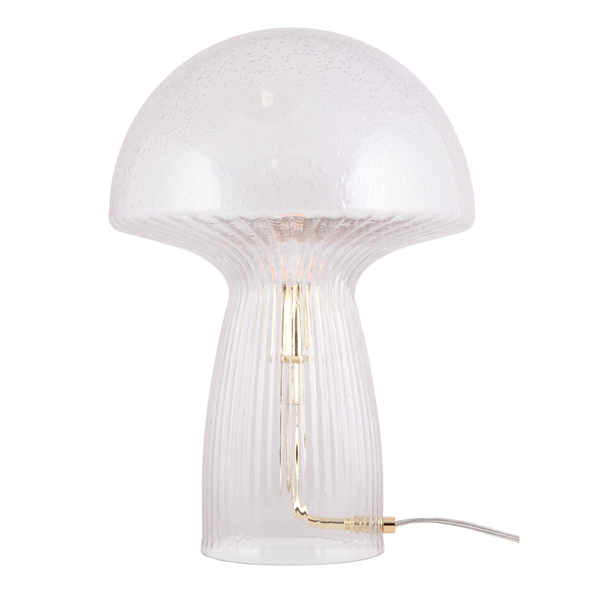 Med inspiration från skogen kommer denna bordslampa avbildad som en svamp. Den är gjord i klarglas med räfflat glas på foten och där räfflorna går hela vägen upp under hatten likt lamellerna på en skivlingsvamp. Lampan har dessutom små vackra luftbubblor i glaset. Lampan har en lamphållare i kontrasterande borstad mässingsfärgad metall samt en 200 cm lång transparent kabel med brytare. Fungo 30 Special Edition är en lite större bordslampa som gör sig fint i ett djupare fönster eller på ett sidobord.