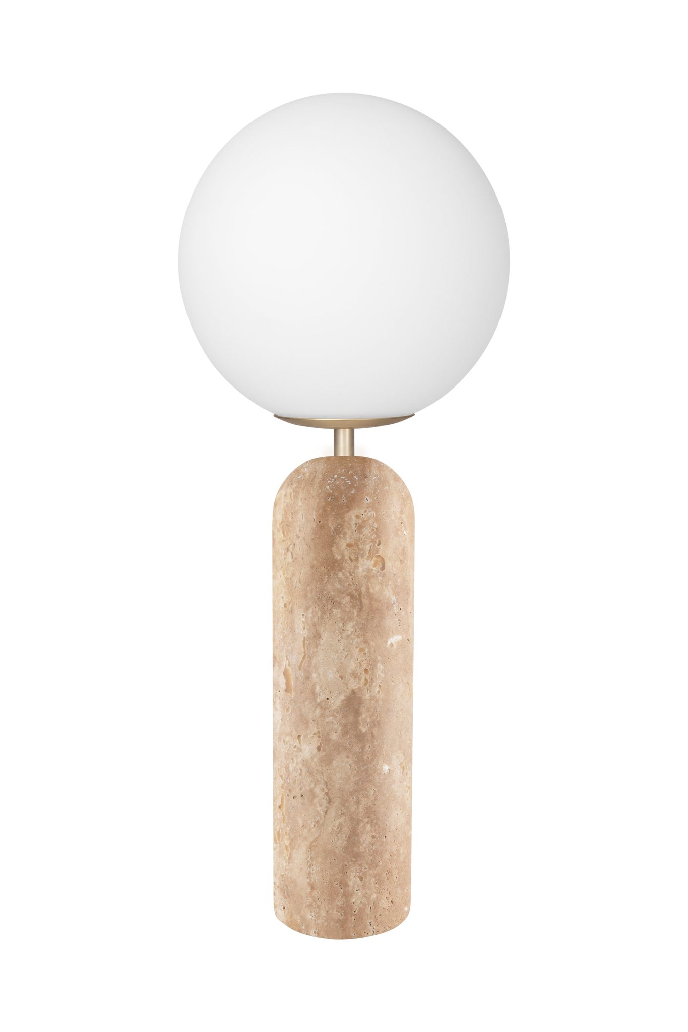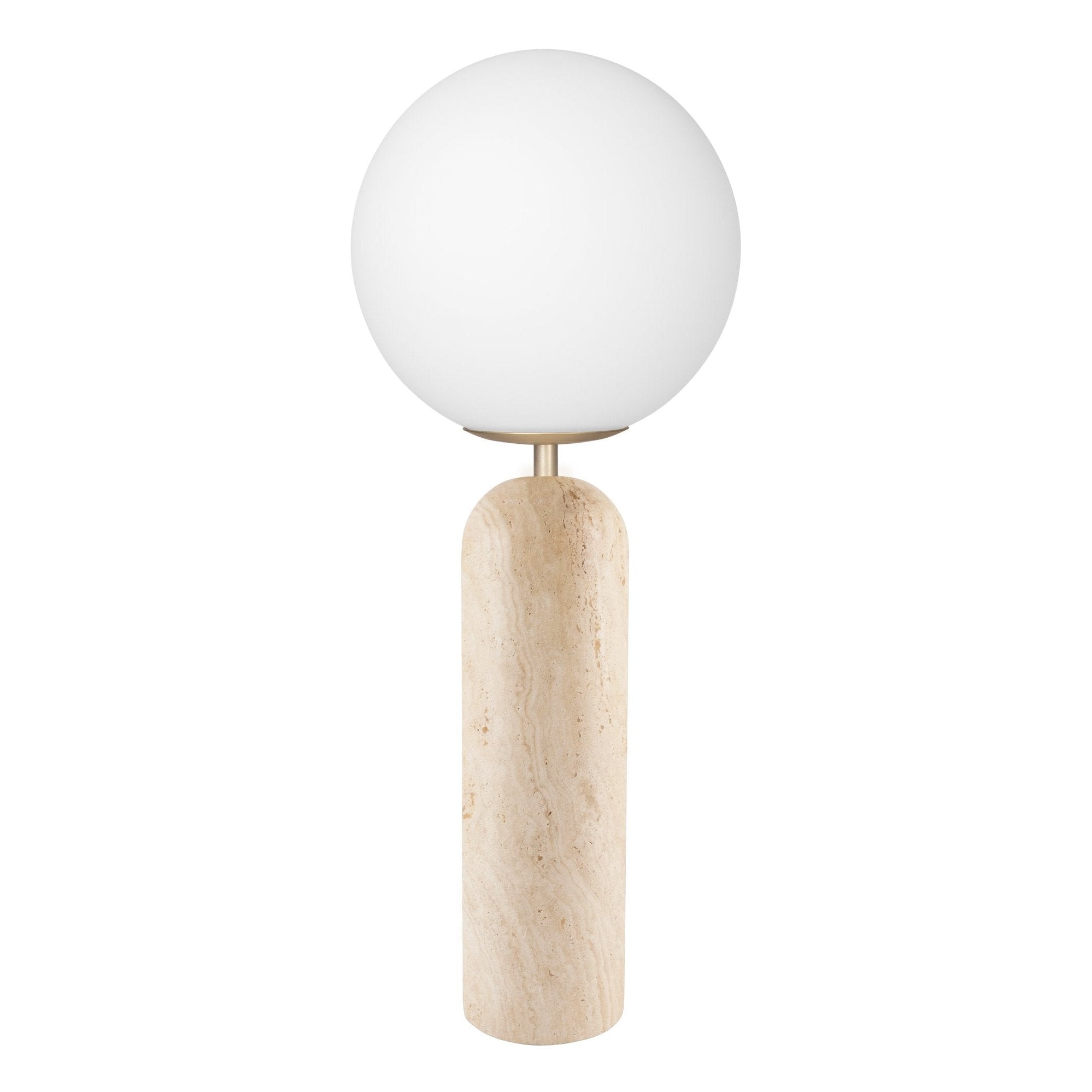 Torrano i vacker solid marmor blir en lyxig inredningsdetalj som verkligen tar plats i rummet. De runda formerna tillsammans med den hårda marmorstenen bildar en spännande kontrast. Denna lampa är gjord i solid travertin, har en glaskupa i vitt opalglas, metalldetaljer i färgen borstad mässing samt en 200 cm lång transparent kabel med brytare och stickkontakt. Det kan förekomma variationer i stenen på denna artikel då den är gjord av naturmaterial, varje lampa är unik.