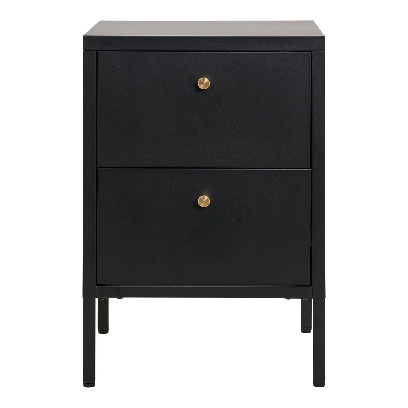 Letar du efter en stilren och funktionell lösning för ditt sovrum eller vardagsrum? Dalby byrå i svart stål från House Nordic är perfekt för dig. Med sina två rymliga lådor erbjuder den både stil och praktisk förvaring. Den kompakta storleken på 40x40x59,5 cm gör den idealisk även i mindre utrymmen. Dess moderna design med rena linjer passar alla typer av inredningar. Använd den för att hålla ordning på småprylar eller som en stilren detalj i hallen. Ge ditt hem en chic touch med denna mångsidiga möbel!