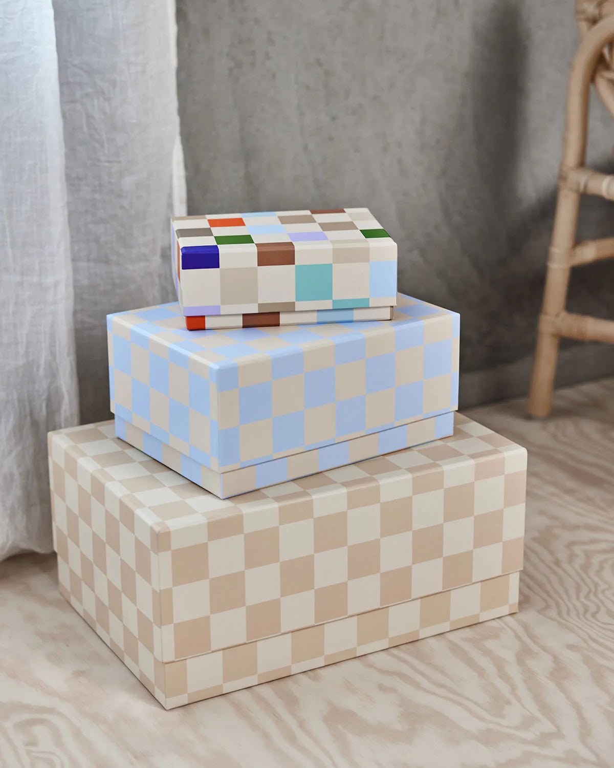 Mana Förvaringslåda Mix från OYOY MINI är det perfekta valet för den som vill ha lite kul och stil i sin organisering. Det här 3-pack setet i schackmönstrat utförande är lika delar lekfullt och praktiskt, vilket gör dem idealiska för att hålla ordning bland leksaker, böcker eller andra hushållsartiklar. Tillverkade av 100% kartong är dessa lådor inte bara miljövänliga utan också charmiga. Dessa färgglada förvaringslådor gör det enkelt att hålla rummet snyggt och organiserat, samtidigt som de ger en touch av personlighet till din inredning. Med sitt lekfulla men eleganta mönster passar de perfekt i barnens rum eller varför inte i vardagsrummet för en trendig och avslappnad atmosfär. Letar du efter ett enkelt sätt att få ordning och reda, samtidigt som du lägger till en smula charm till ditt hem, så är Mana Förvaringslåda Mix lösningen för dig!