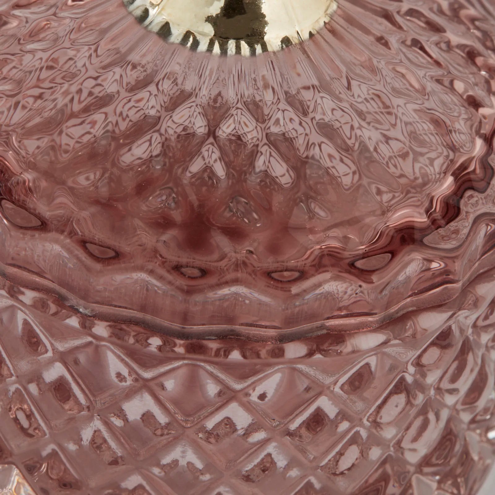 Miya Glasburk i rosa och guld är en konstnärlig glasburk som inte bara smyckar ditt hem utan även är praktisk för förvaring av smycken eller små prylar. Den eleganta burken passar perfekt i olika rum och dess vackra mönster i glaset ger en speciell touch. Skapa personlig atmosfär på byrån eller i badrummet med denna magiska Miya burk från LENE BJERRE.