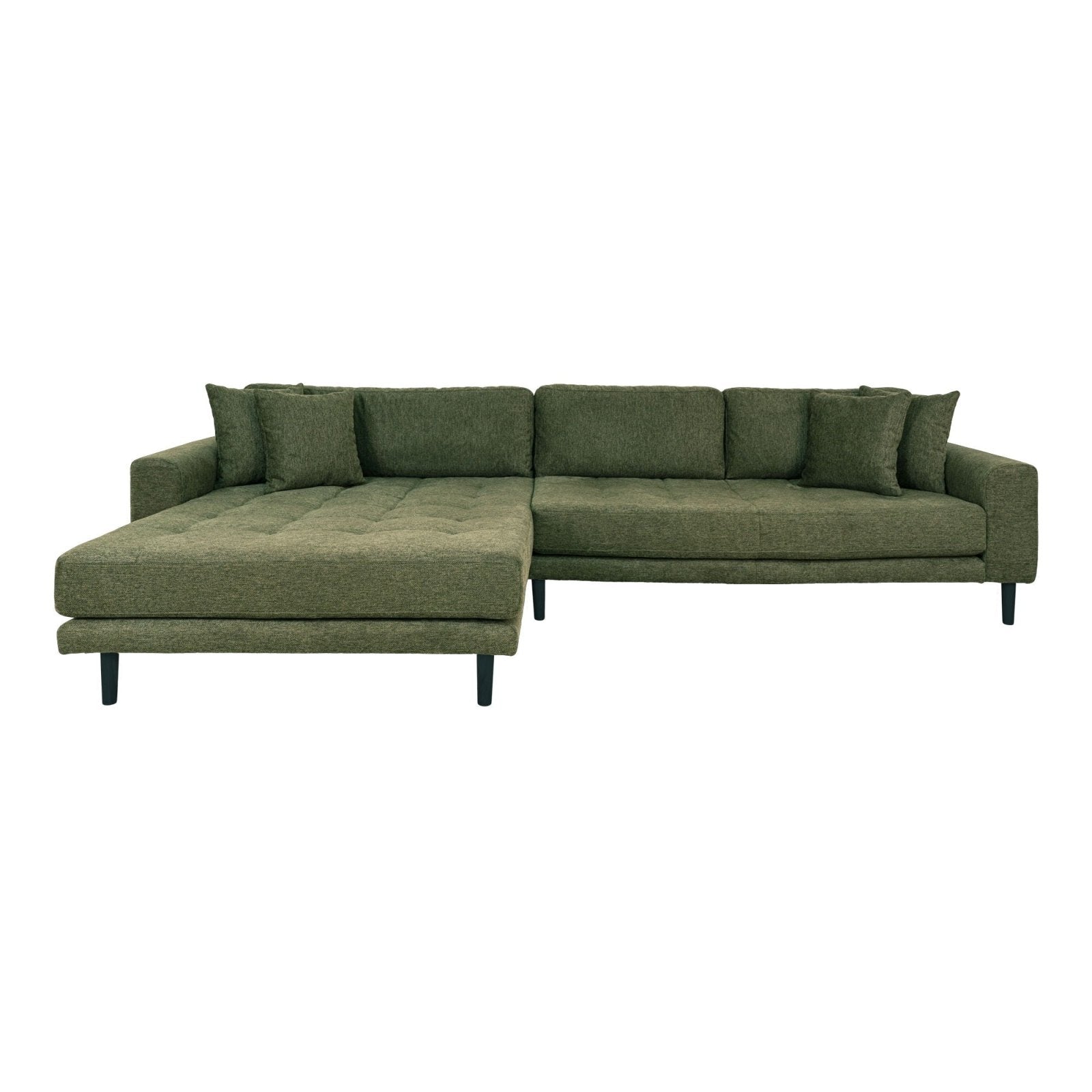 Ge ditt vardagsrum en trendig uppgradering med Lido divansoffa i olivgrönt från House Nordic. Med sina eleganta svarta träben och fyra bekväma kuddar är denna vänsterställda soffa både stilren och funktionell. Perfekt för avslappnade stunder och rymmer lätt hela familjens kvällshäng. Olivgrön är inte bara trendigt utan också en färg som harmoniserar med de flesta inredningar, vilket gör det enkelt att matcha med andra möbler. Så, luta dig tillbaka och njut av bästa komfort och stil i ditt hem.