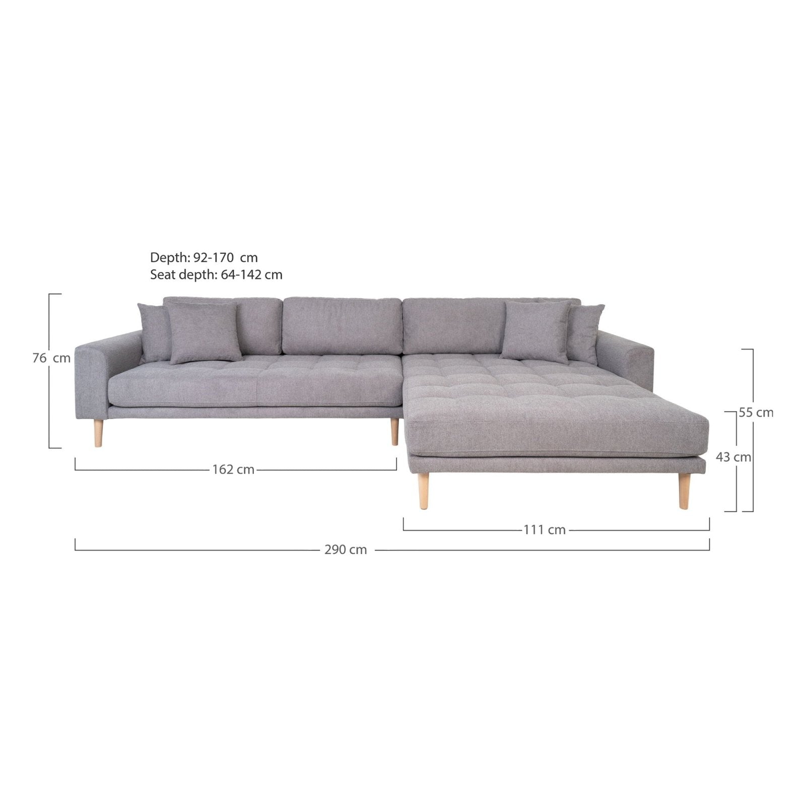 Upptäck Lido Divansoffa från House Nordic, en perfekt kombination av stil och komfort för ditt vardagsrum. Den här ljusgrå divansoffan med högerläge, fyra kuddar och ben i naturellt trä skapar en harmonisk och modern känsla. Perfekt för avslappnade kvällar eller att imponera på gästerna. Soffans eleganta design och praktiska användning gör den till det ultimata valet för din vardagsrumsinredning. Drömmer du om att förvandla ditt hem till en stilren och inbjudande oas? Då är Lido Divansoffa rätt val för dig.