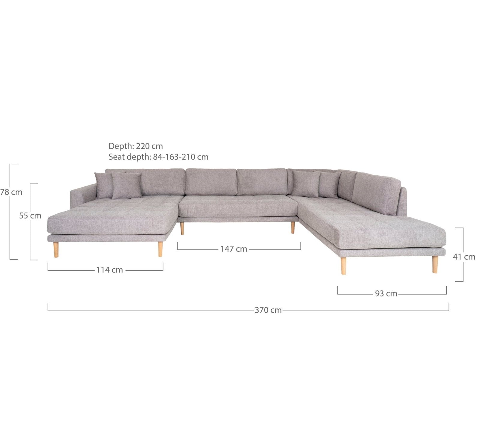 Letar du efter en bekväm och stilren soffa för vardagsrummet? Lido U-Soffa från House Nordic i mörkgrå nyans med naturliga träben är den perfekta blandningen av elegans och funktion. Med sin U-form och generösa plats passar den utmärkt för mysiga filmkvällar eller avslappnade helgmorgnar. De fyra inkluderade kuddarna ger extra komfort. Denna divansoffa är ett måste för dig som älskar det enkla och trendiga. Ge ditt vardagsrum den uppgradering det förtjänar och njut av stil och komfort varje dag.