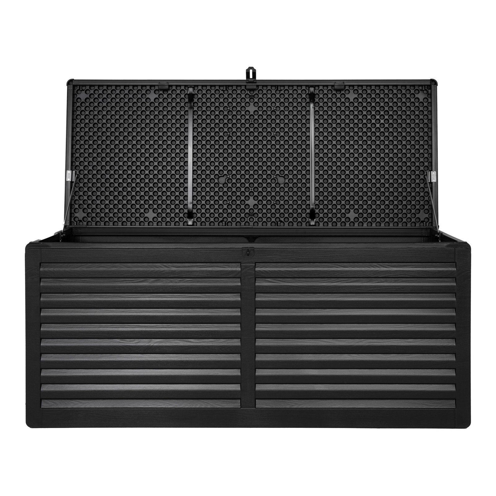 Upptäck Dubrovnik Dynbox från House Nordic, den perfekta lösningen för att hålla dina trädgårdsdynor torra och organiserade. Tillverkad i slitstark plast, erbjuder denna svarta förvaringslåda hela 490 liters utrymme, vilket gör den idealisk för din uteplats eller trädgård. Med sina mått på 146,5x61x64,5 cm passar den utmärkt var som helst utomhus. Perfekt för dig som vill hålla ordning samtidigt som du skyddar dina trädgårdstillbehör från väder och vind. Gör ditt uteliv enklare och mer stilfullt med denna funktionella dynbox.