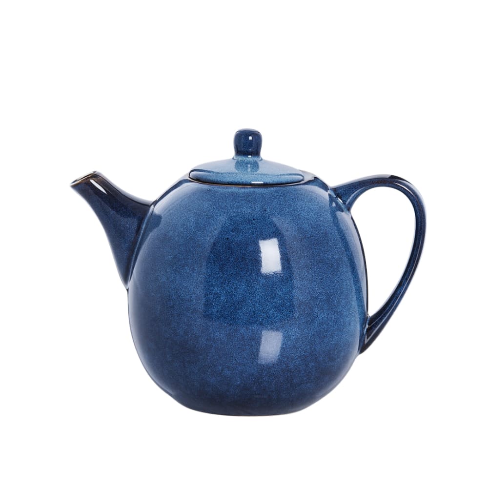 Ge tebjudningen en touch av färg med Amera tekanna i blå stengods från LENE BJERRE. Denna 140 cl tekanna är en del av Amera-serien och glaserad med dubbel reaktiv glasyr för unik karaktär. Perfekt för mysiga stunder och passar bra i en avslappnad inredningsstil i köket eller vardagsrummet. Mikrovågsugn- och diskmaskinsäker för enkel användning.
