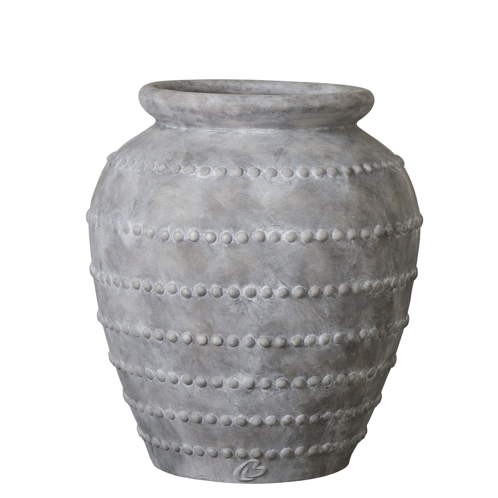 Ge dina blommor den uppmärksamhet de förtjänar i denna tidlösa Anna-kruka i antikgrå färg. Dess klassiska design passar perfekt i olika inredningsstilar och skapar en äkta och mysig atmosfär. Perfekt för vackra växter i vardagsrummet eller på altanen. Denna handgjorda och vattentäta kruka är 100% keramik och ger en touch av elegans till ditt hem.