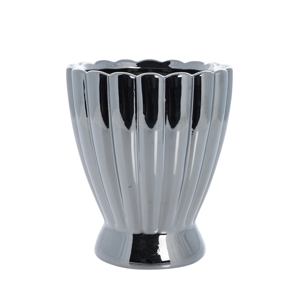 Förgyll ditt hem med Shenella blomkruka i silver från LENE BJERRE. Denna vackra keramikkruka adderar tidlös elegans vart du än placerar den. Med sin eleganta form och rustika finish passar den perfekt både inomhus och utomhus. Oavsett om du vill skapa en klassisk trädgårdsstil eller lyfta din vardagsrumsmiljö är Shenella det ultimata valet. Använd den med färska blommor eller växter, eller varför inte med en konstgjord variant för en underhållsfri touch av skönhet.