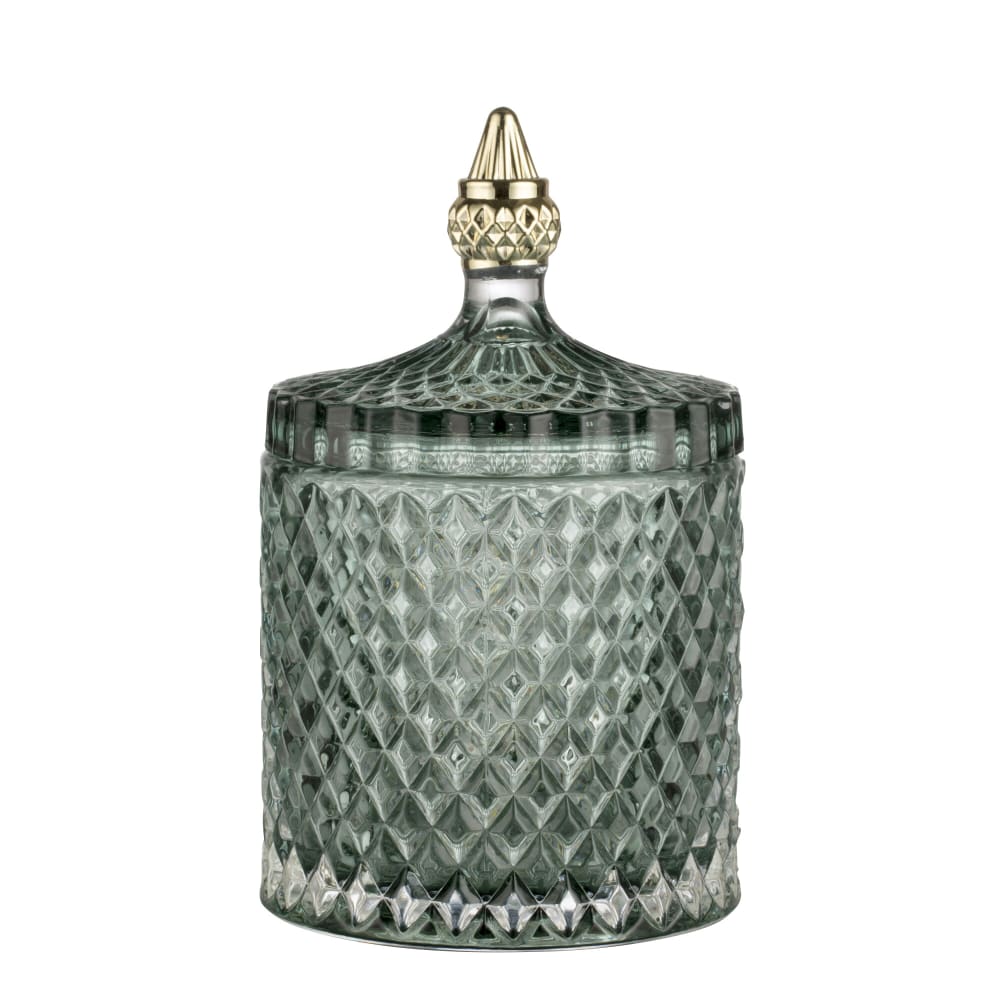 Miya Glasburk i grön och guld är inte bara en vanlig glasburk - det är en konstnärlig skapelse! Förvara dina smycken eller små prylar på ett smart sätt samtidigt som du lyfter din heminredning. Den eleganta Miya-burken passar perfekt i olika rum och dess vackra glasmönster ger den en magisk touch. Perfekt för att skapa en personlig atmosfär i din inredning!