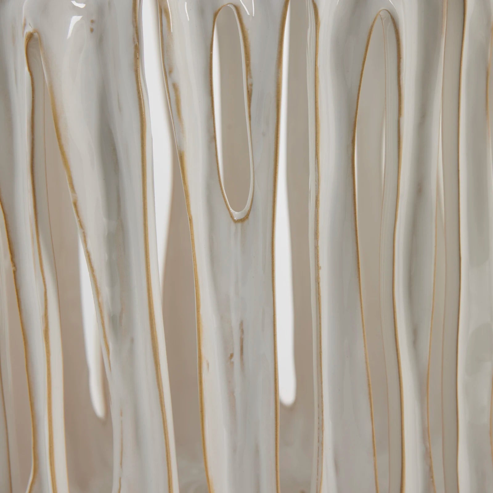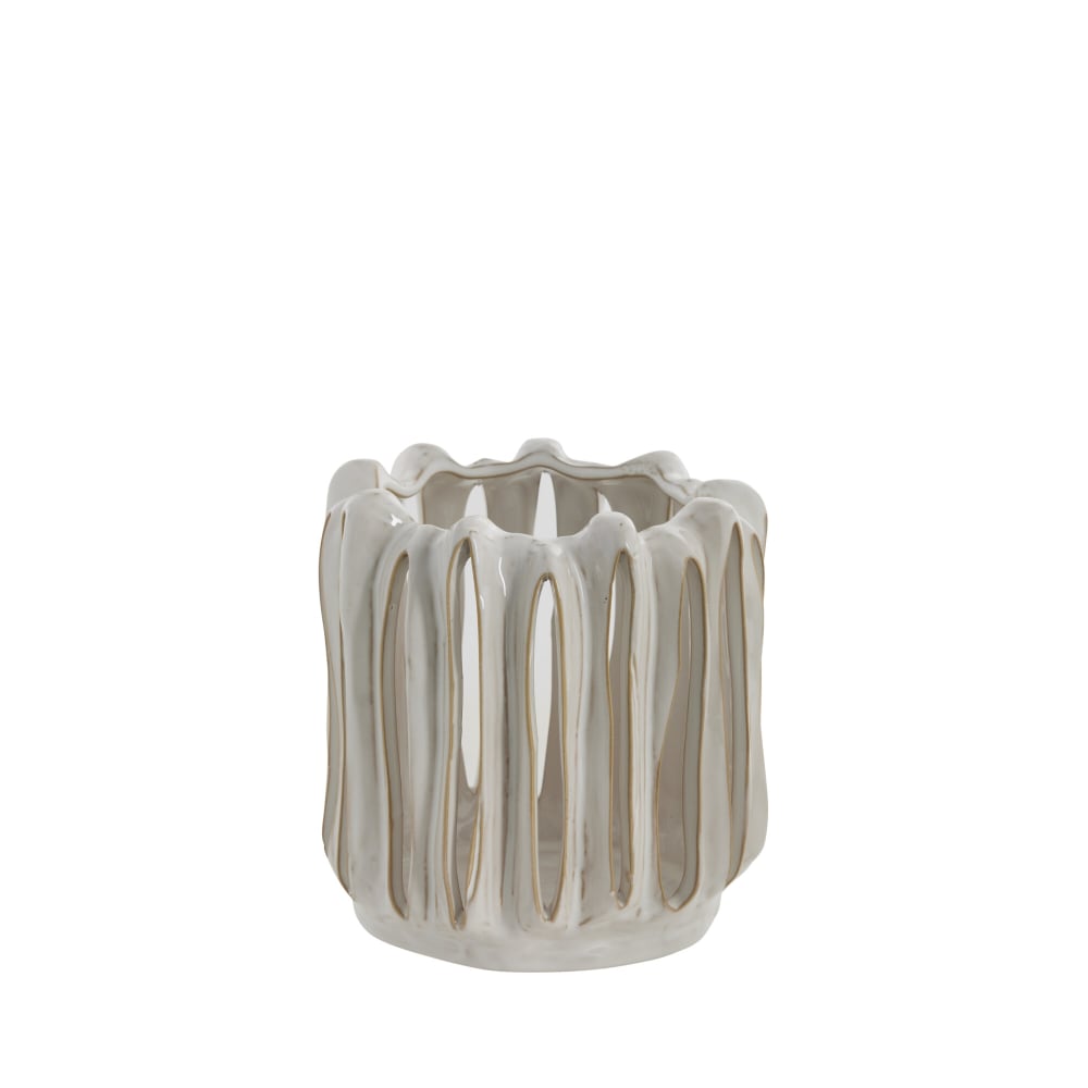 Skulpturala Marlille ljuslyktan i vitt keramik sprider vackert ljus och skuggor, perfekt för att lyfta fram din heminredning. Mätningarna 17 x 17 x 16,5 cm gör den idealisk för vardagsrum eller sovrum. Lys upp din atmosfär med denna handgjorda, keramiska lantern från LENE BJERRE.