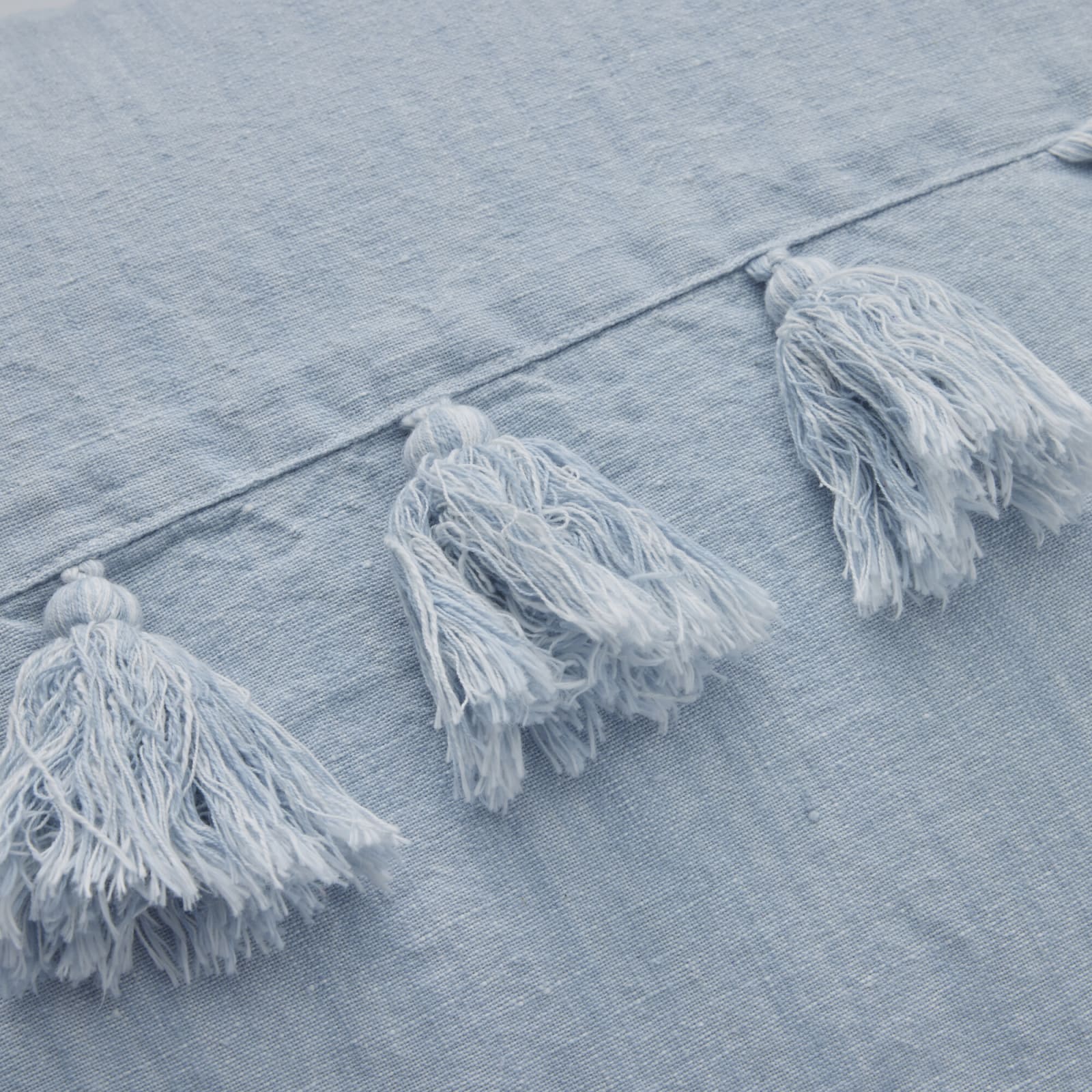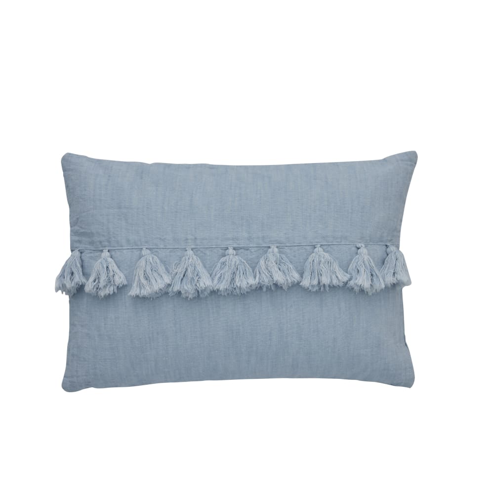 Förgyll ditt rum med den handgjorda Felinia prydnadskudden i blått från LENE BJERRE. Tofsar ger kudden en unik touch och varje kudde är en unik skapelse. Skapa en modern och klassisk inredning med matchande kuddar och plädar. Kudden är OEKO-TEX® Standard 100-certifierad för din trygghet. Passar perfekt i vardagsrummet eller sovrummet för att skapa en avslappnad och stilren atmosfär.
