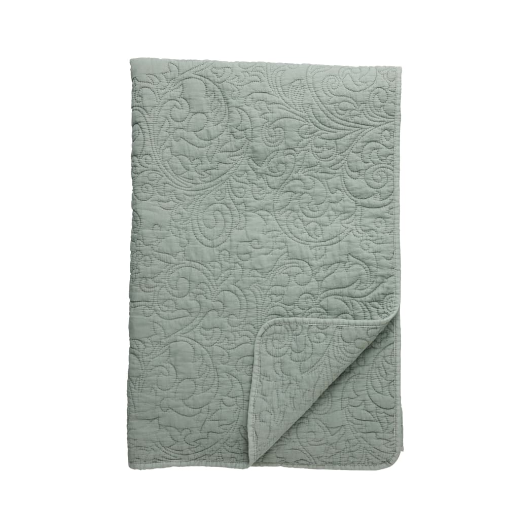 Inslag av elegans! Isabelle pläd i färgen Sage, mått 170x130 cm. Omslut dig i komfort med denna mjuka pläd av hög kvalitet, perfekt för mysiga stunder. Det charmiga mönstret och den unika stengtvättade finishen ger varje filt en touch av skönhet. Passar utmärkt för svala sommarnätter eller som dekorativ accent i vardagsrummet. En perfekt följeslagare för att skapa en ombonad känsla!