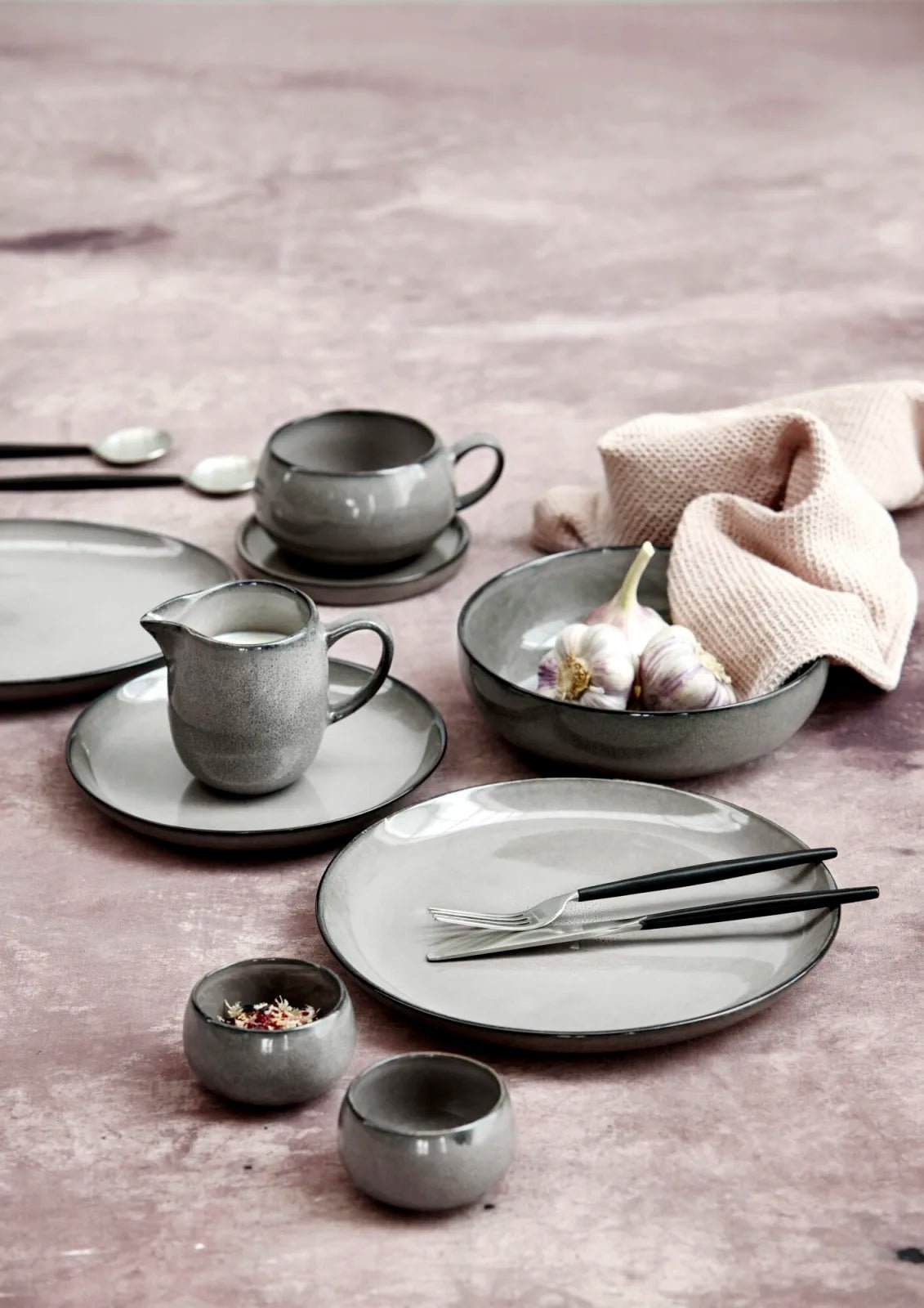 Skäm bort dig själv med den vackra Amera-skålen i grå stengods från LENE BJERRE. Med en diameter på 8 cm och höjd på 5 cm ger denna skål en touch av glädje och obalans till din matsalsbord. Den mjuka organiska formen skapar en härlig atmosfär. Amera-serien har en unik dubbelt reaktiv glasyr, vilket ger varierad färg och utseende från stycke till stycke. Perfekt för en avslappnad och inbjudande inredningsstil i matsalen. Notera: Skålen är mikrovåg- och diskmaskinssäker.