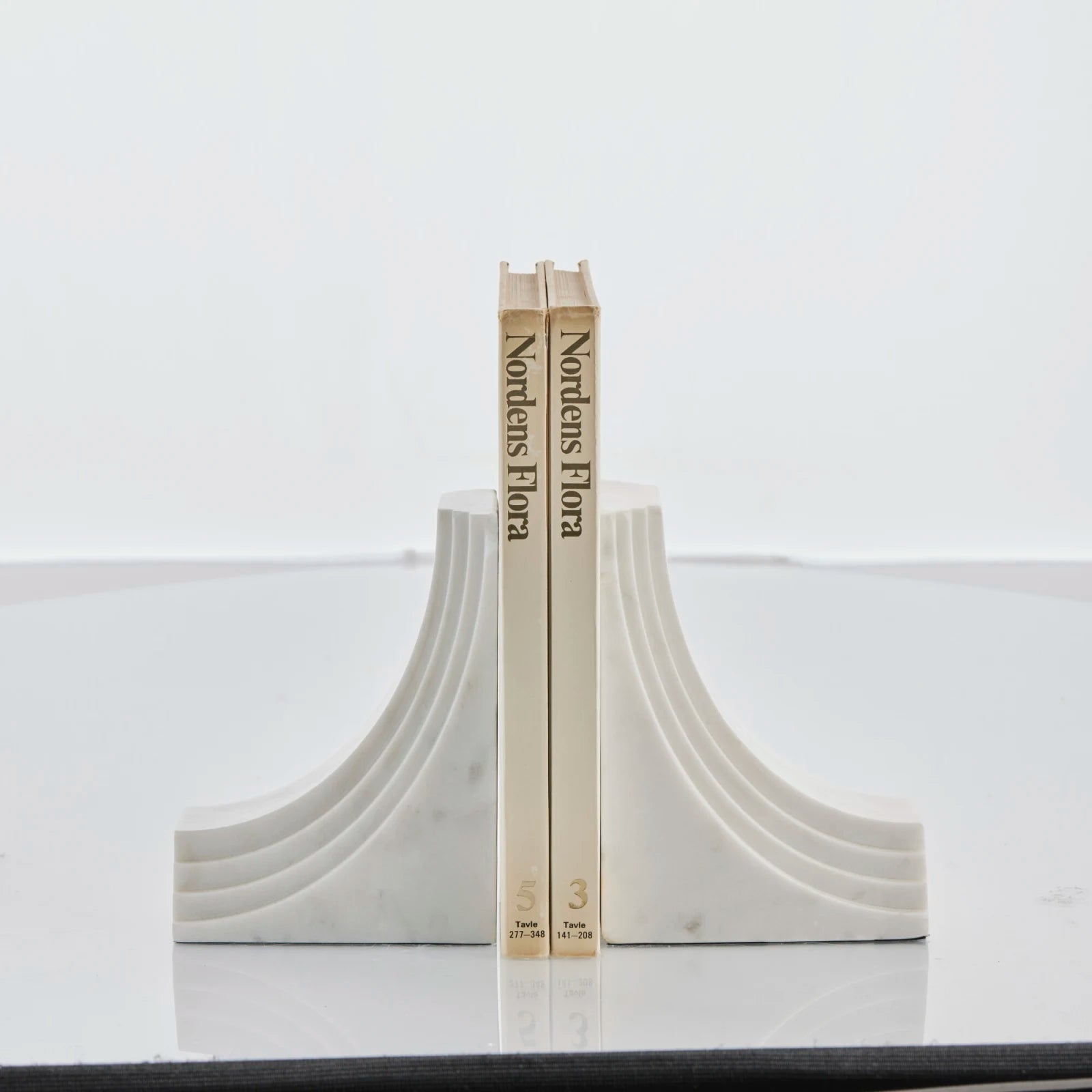 För en touch av elegans i ditt hem, välj detta tidlösa bokstöd i vit marmor från LENE BJERRE's Ellia-serie. Det luxuösa och eleganta bokstödet är perfekt för att strukturera dina böcker. Passar utmärkt i ett stilrent och elegant inrett rum. Tillverkat av solid marmor, håller detta bokstöd tyngre böcker stadigt på plats. Handgjort och unikt, varje bokstöd varierar i färg från ljusbrun till mörkbrun för att addera en naturlig touch. Skötselråd: Torka av med fuktig trasa och polera för att behålla dess skönhet.