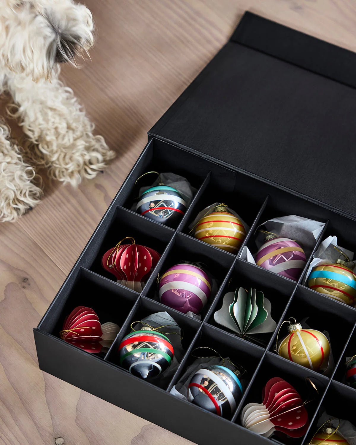 Letar du efter ett stilrent sätt att förvara dina juldekorationer? Upptäck Hako Förvaringslåda i svart från OYOY LIVING – en perfekt kombination av funktion och elegans, inspirerad av japanska designprinciper. Perfekt för den minimalistiske, erbjuder denna låda en organisering som håller dina julkulor snyggt samlade. Med sin smarta platta design blir montering en enkel match och ger samtidigt dina dekorationer en egen exklusiv plats. Lådan passar utmärkt i vardagsrummet eller vilket rum som helst där du vill införa en känsla av stil och lugn. Med Hako Förvaringslåda kan du skapa en snygg och harmonisk miljö även under de livligaste stunderna av julförberedelserna. Gör din inredning ännu mer tilltalande med denna elegant designade förvaringslösning, och håll dina högtidsminnen organiserade och när till hands med stil!