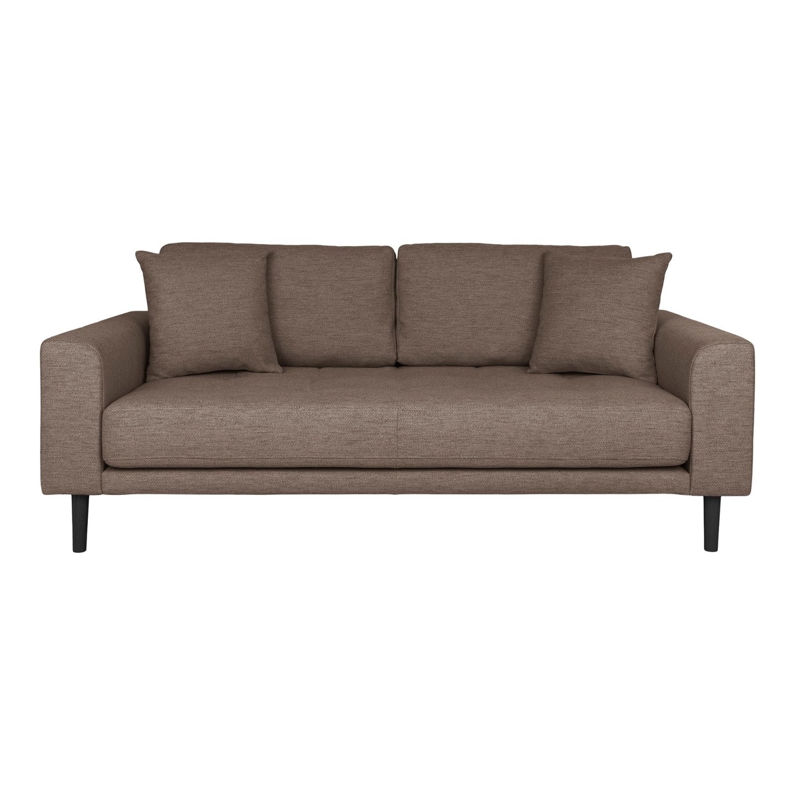 Upptäck Lido 2,5-sits soffa från House Nordic – en perfekt blandning av stil och komfort. Med sin eleganta bruna klädsel och svarta träben ger den ett stilrent uttryck som passar perfekt i vardagsrummet. De två medföljande kuddarna bidrar till extra mysfaktor, idealiskt för kvällar framför TV:n. Dess storlek gör den optimal både för mindre och större utrymmen. Söker du en modern och bekväm sittplats som förbättrar ditt vardagsrum? Lido-soffan har allt du behöver. Fyll ditt hem med tidlös design och komfort, och skapa en plats där alla vill hänga.