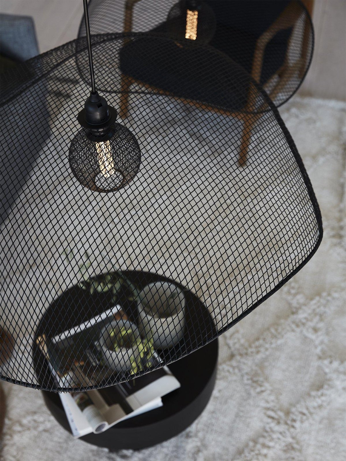 Taklampa Vivi är en vid bredbrättad och vågformad taklampa tillverkad av svart metallgaller. Snygg i många miljöer och ger fina reflektioner när den är tänd. Levereras med svart takupphäng i plast 1,2m med takkopp för krokupphäng. Diam 79cm, höjd 22cm. E27, max 40W. IP20. Takkontakt och ljuskälla ingår ej. Matchar med lampor från serien Grid.