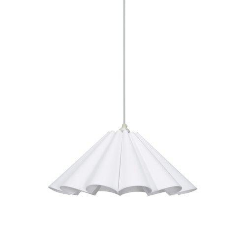 Takskärm Freja med sin mjuka blomblads liknande form. Handsydd blad för blad med kantband och vitt slätt bomullstyg. Insida med vitt laminat som ger ett fint sken. Diameter nedtill 45cm. Höjd 19cm. Öppning upptill 9cm. E27 fäste upptill (toppring). Matcha med takupphäng i textil eller använd på en Amy golvfot. Takupphäng och ljuskälla köpes separat.
