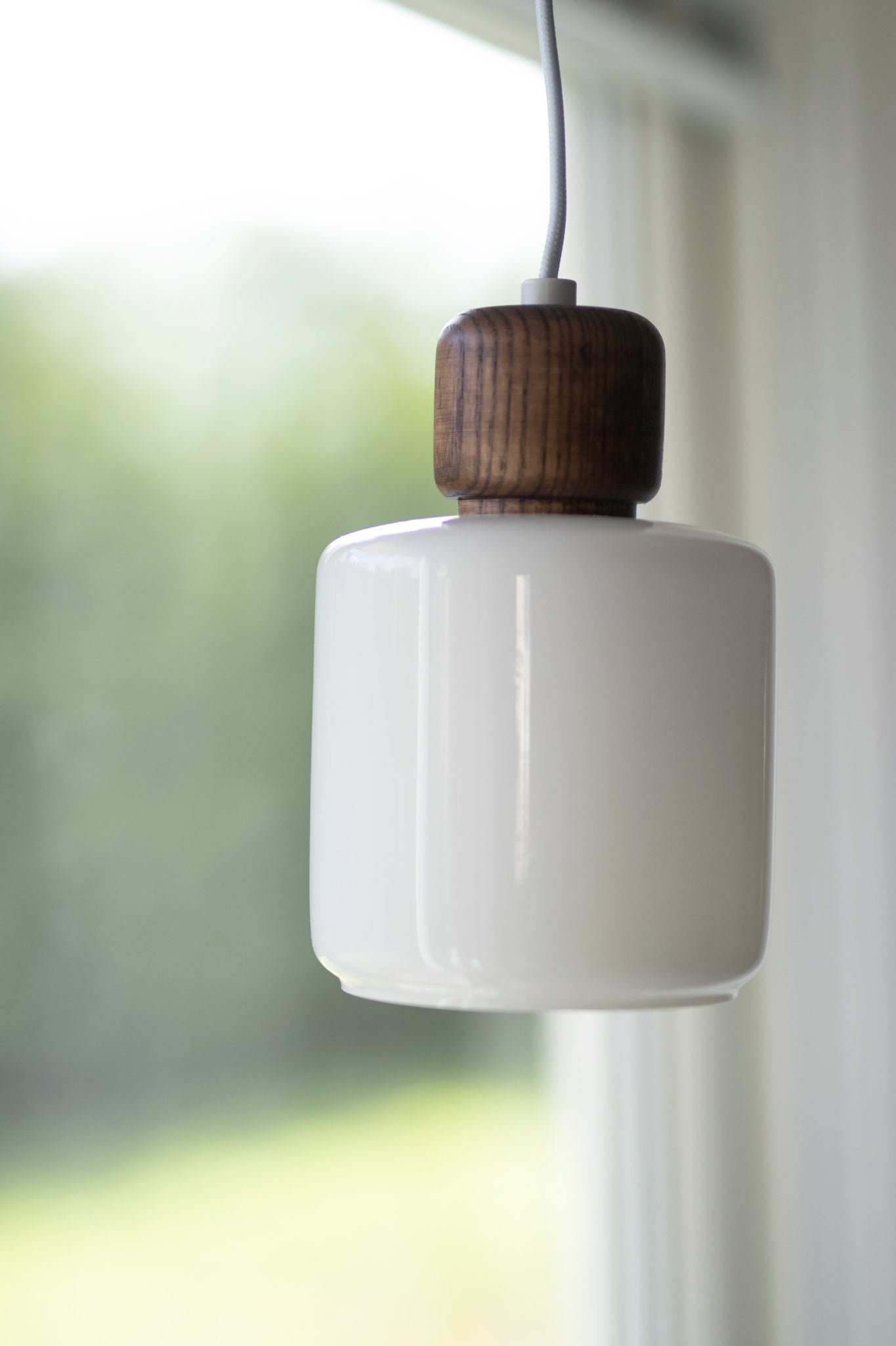 Inspirationen till lampserien DOT har formgivaren Roger hämtat från en glasflaska utsmyckad med ett lock med större knopp. Lampans knopp i trä skapar en fin kontrast till glaskupan. Rogers tanke med serien DOT är att du ska kunna gruppera de två storlekarna på olika sätt, flera matchande lampor på samma yta. Lampan har en kupa som är gjord av vitt blankt glas med en knopp ovanpå i valnötsfärgat trä. DOT har en 350 cm lång vit textilkabel med brytare.