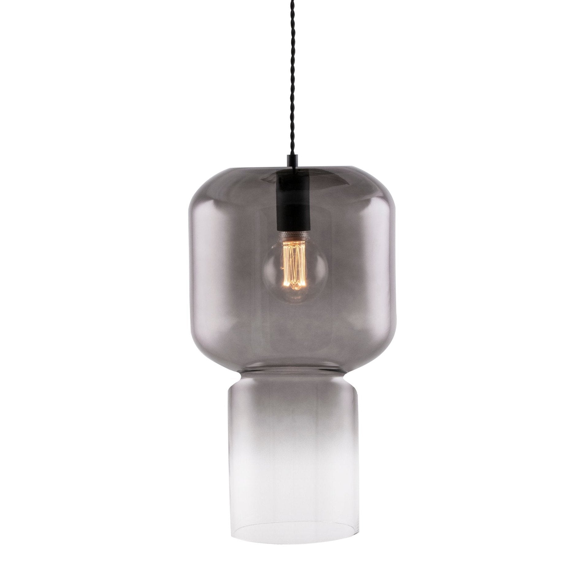 Formgivaren Mimmi formger ofta organiskt, runt och mjukt, vilket också speglas i lampserien Nog för Globen Lighting. Nog taklampa har ett stilrent formspråk. Glaskupan är gjuten i ett stycke, med en midja på mitten och glaset går från mörkt rökfärgat till klarglas. Nog har en 120 cm lång svart tvistad textilkabel samt takkopp i svart plast.