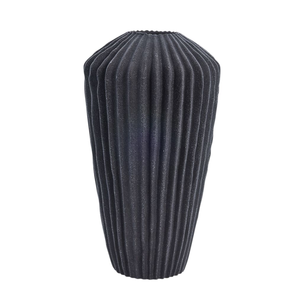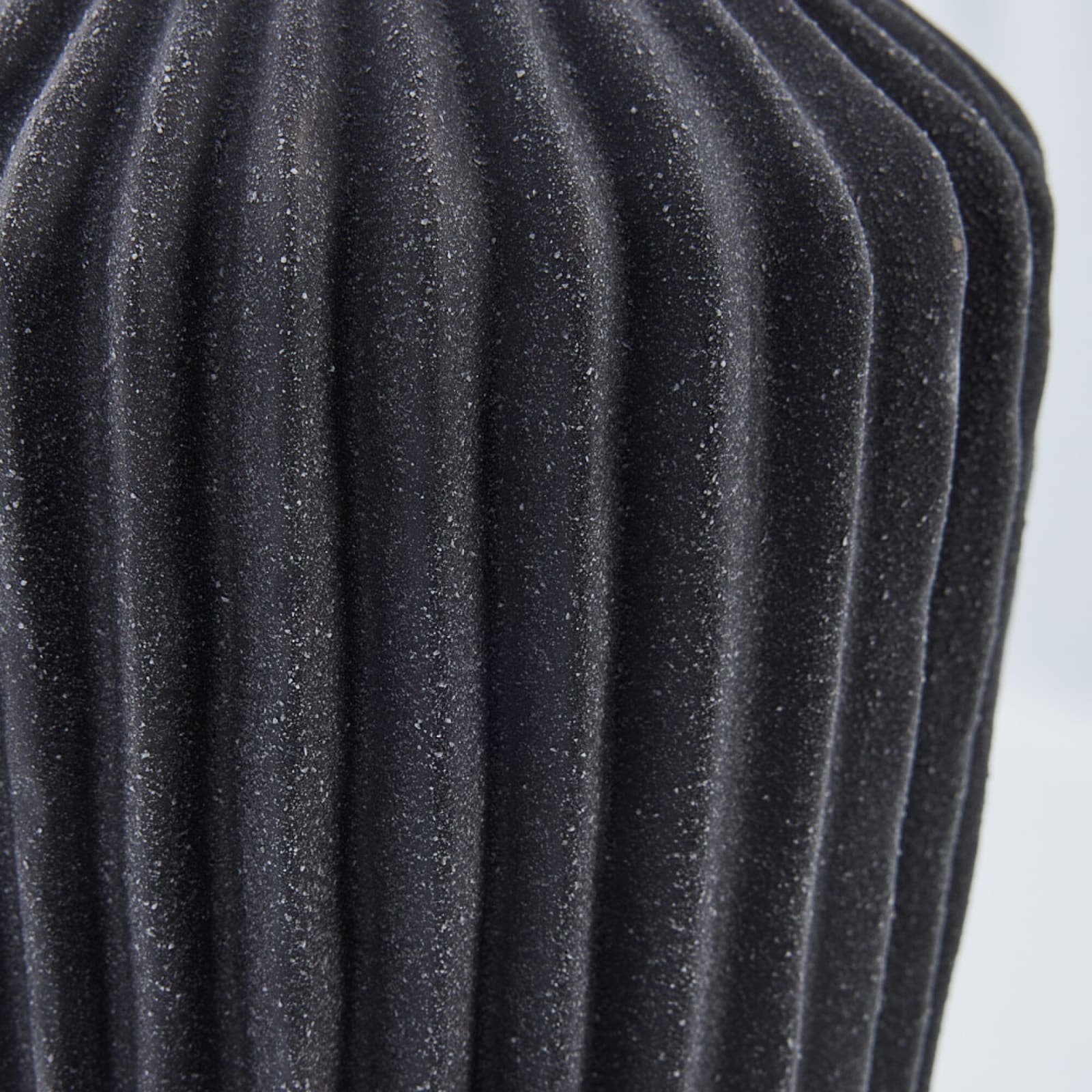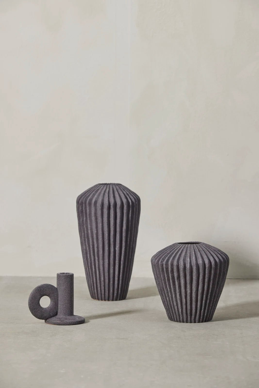 Denna eleganta mörkgrå Susia vas från LENE BJERRE är tillverkad av keramik och har subtila räfflor. Med en stilren design i storlek L14.5xB14.5xH26.5 cm passar den perfekt för att skapa en stilfull och elegant atmosfär i ditt hem. En perfekt vas för att ge dina favoritblommor nytt liv!