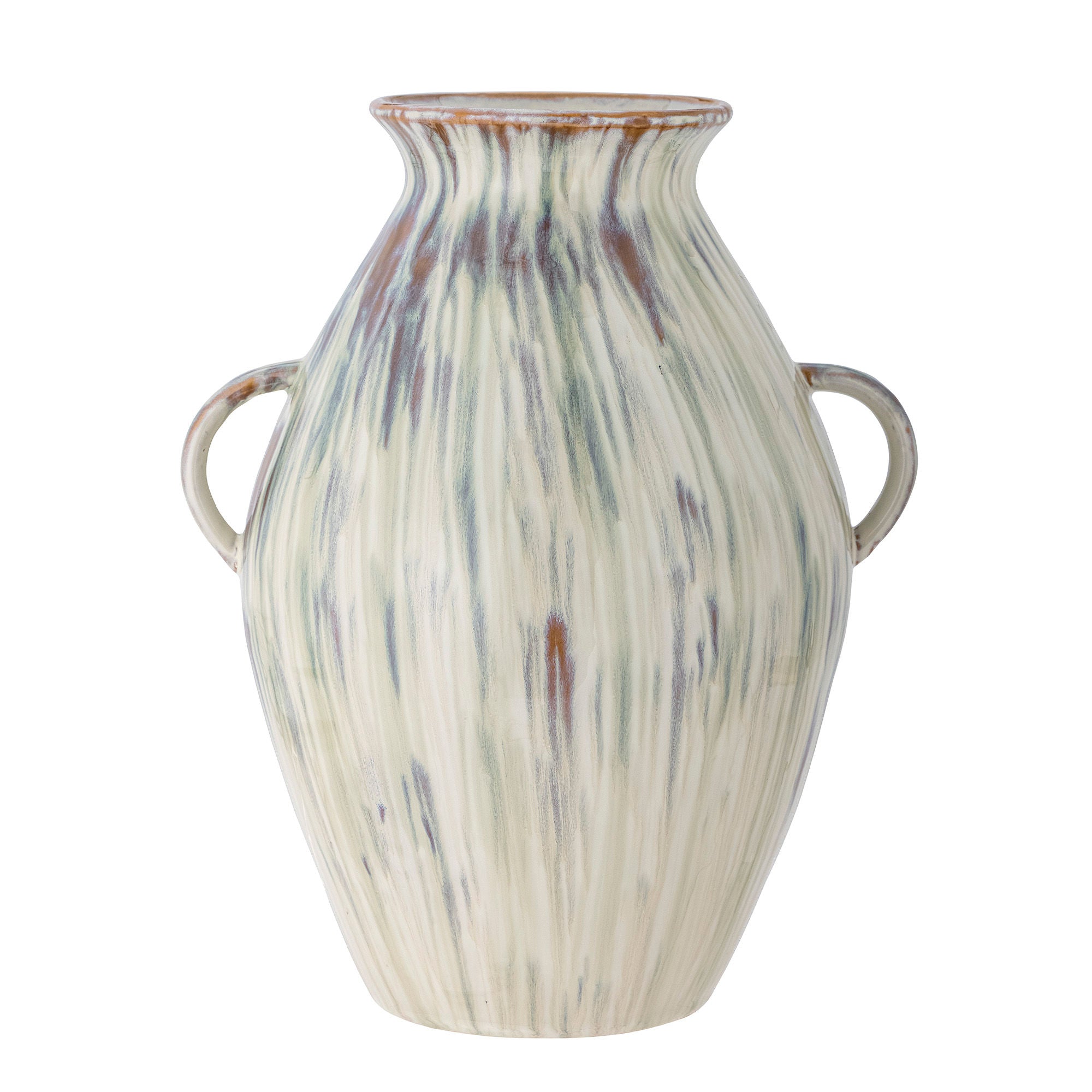 Den gröna Sanella-vasen från Bloomingville är en elegant och hög vas med handtag och handmålad glasyr. Denna unika vas ger en touch av elegans till ditt hem och passar perfekt för att visa upp dina favoritblommor. Med färgvariationer som kan förekomma på grund av glasyren och handtillverkningstekniken får vasen en charm som gör den till en unik del av din inredning. Passar utmärkt i en stilfull och elegant inredning.