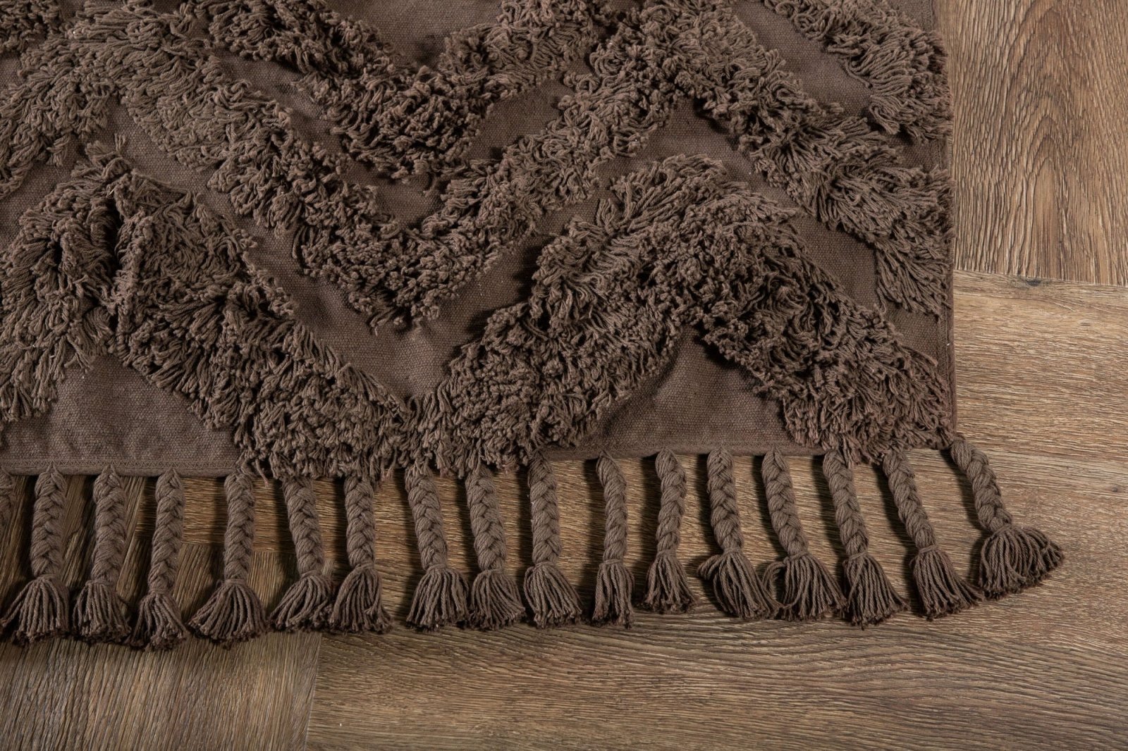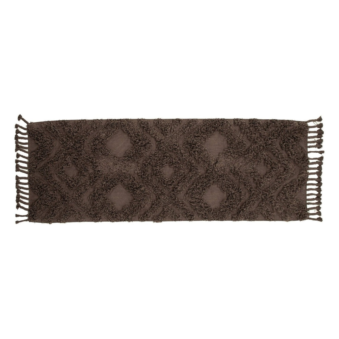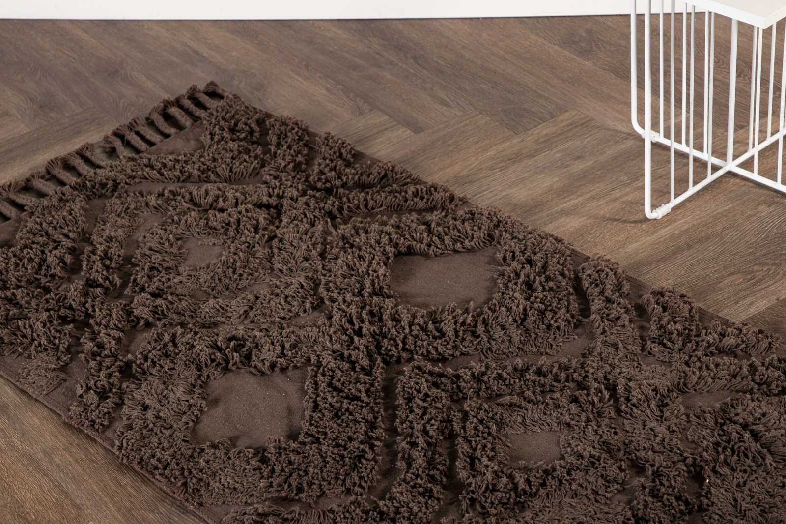 Skapa en ombonad atmosfär i ditt hem med en matta som ger en modern look till inredningen och en värmande känsla. Ullmattan från serien Hilma är en långsmal, rektangulär mattdröm i modern tappning, här i en smäcker brun kulör. Mattan har ett tuftat mönster i högre lugg och en flätad frans rad längs kortsidorna som bidrar till en klassisk design i kombination med det trendiga. De slitstarka egenskaperna hos materialet gör att mattan fungerar utmärkt i de flesta rum. Placera solitär i hallen eller i vardagsrummet för att lyfta stilnivån några steg! Mattans mått: 200x70 cm.