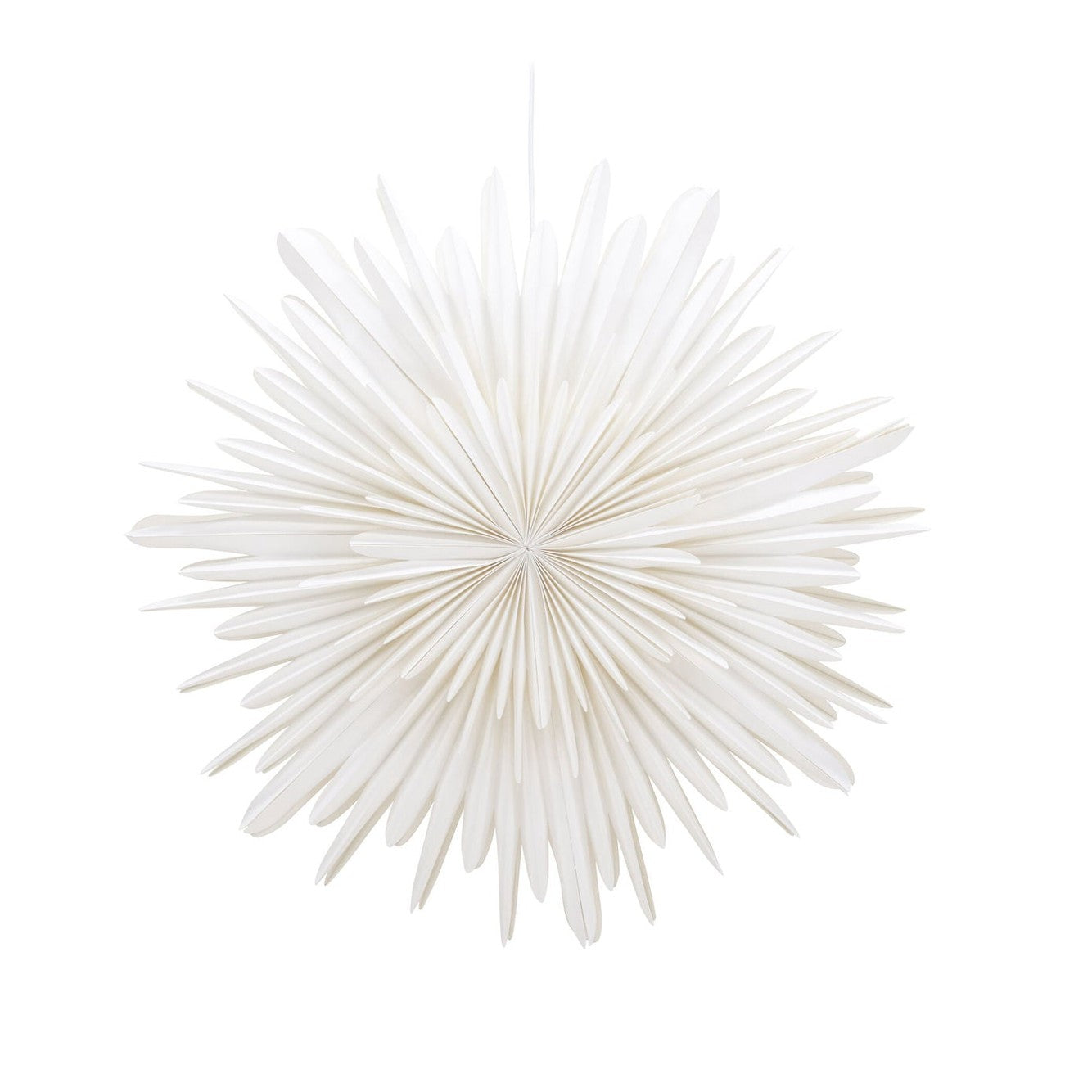 Denna vackra vita pappersstjärna är den perfekta belysningen för att skapa en personlig och mysig atmosfär i ditt hem! Oavsett om det är under höstens mystiska kvällar eller under julens festligheter, kommer taklampan från serien Sälen att sprida ett varmt och inbjudande sken som omedelbart kommer att förvandla ditt rum till en fridfull oas.