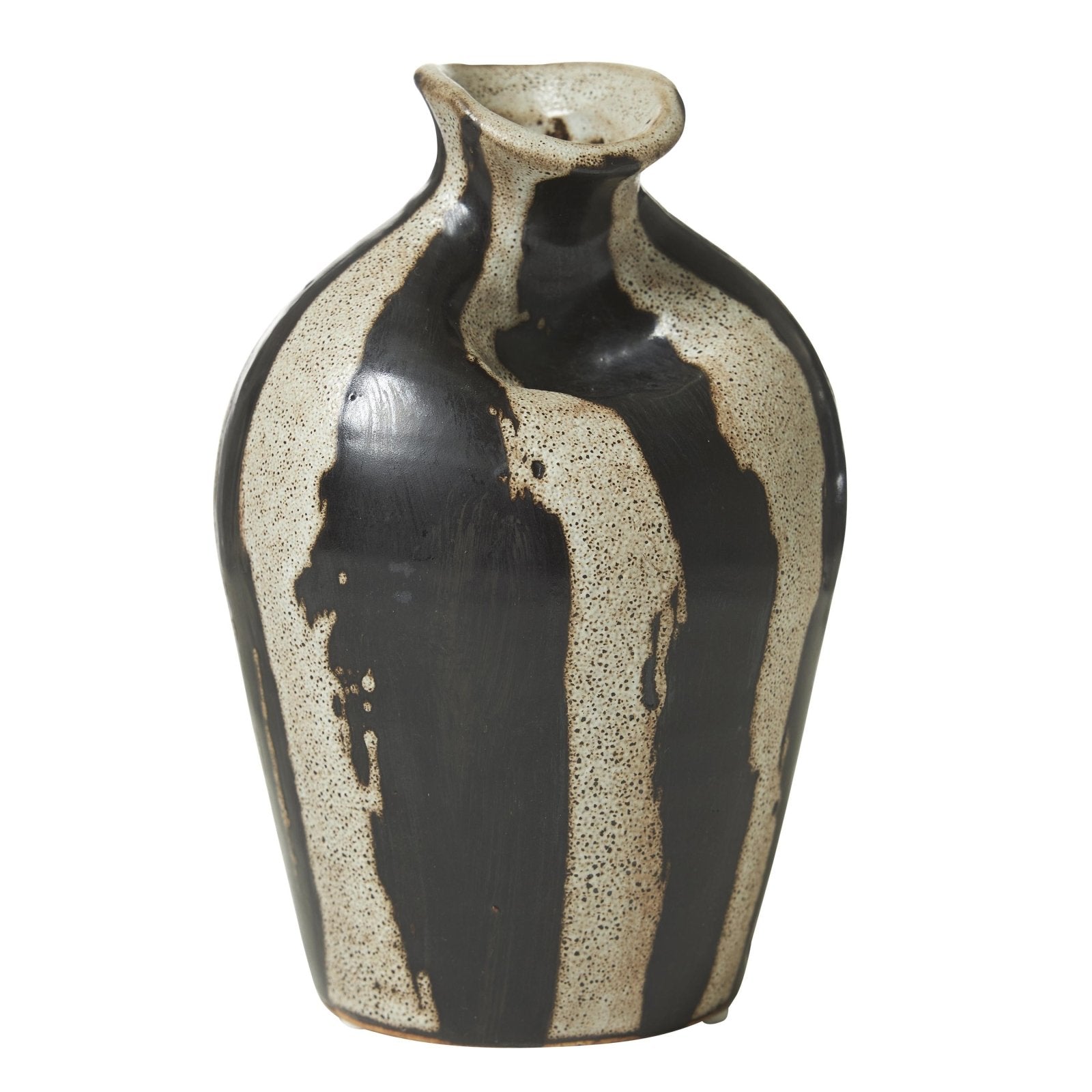 Välkommen till en ny dimension av elegans och konst med vasen Tulip - en statement-vas som inte bara rymmer blommor utan själv är en blomstrande konstnärlig skapelse. Trots sin minimalistiska storlek känns designen och utseendet på vasen extraordinära och unik, vilket omedelbart gör den till en favorit och ett iögonfallande tillskott till ditt hem. Tulip är mycket mer än bara en vas, den är en skulptur i sig själv. Med sina svarta ränder som kontrasterar mot den eleganta formen skapar den en dramatisk och modern uttrycksfullhet. Den organiska formen ger en känsla av rörelse och liv, vilket gör Tulip till en visuell fest. Vasen är gjord av stengods med en reaktiv glasyr vilket gör att varje vas blir unik i sin finish. Den här produkten är en del av Jakobsdals kollektion tillsammans med den visionära kreatören och designern Storm Storm.