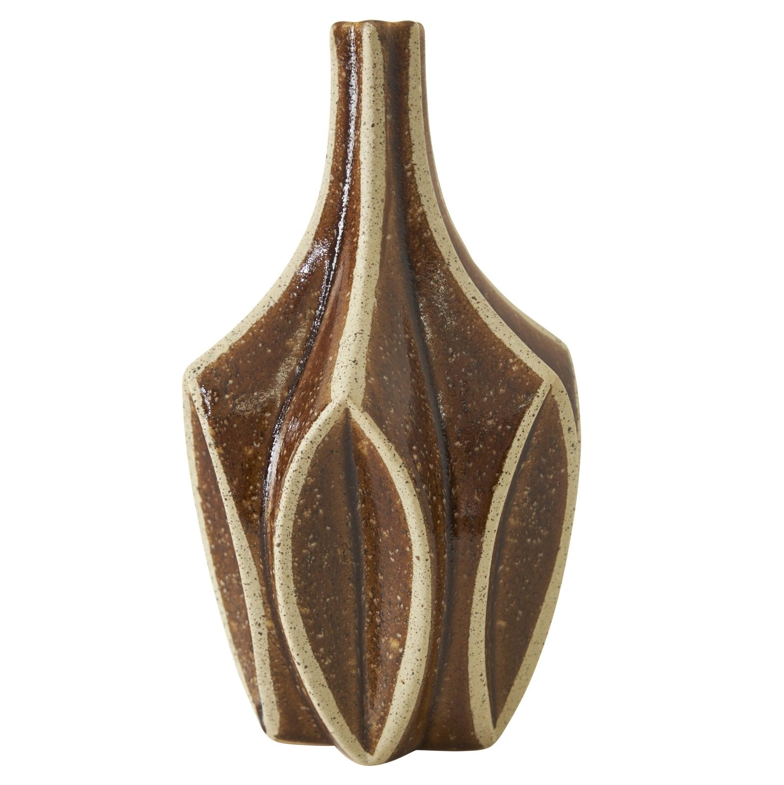 Ge ditt hem en touch av konstnärlig elegans med vår stengodsvas, Ezra. Med sina jordnära färger och en unik design blir Ezra en riktig statement-vas som sticker ut och fångar uppmärksamheten. Ezra-vasen är skulpterad med noggrannhet och omsorg, och dess unika design ger den en känsla av individualitet och originalitet. De jordnära färgerna förstärker den naturliga känslan och gör den lätt att integrera i olika inredningsstilar. Denna coola vas är inte bara ett konstverk utan också en funktionell och vacker behållare för dina favoritblommor eller gröna kvistar. Placera Ezra som en central punkt på din hylla, på bordet eller som en elegant dekoration på sidobordet. Med sin unika design och jordnära charm kommer Ezra att bli en älskad del av ditt hem och en utmärkt statement-piece som sätter tonen för din inredning.