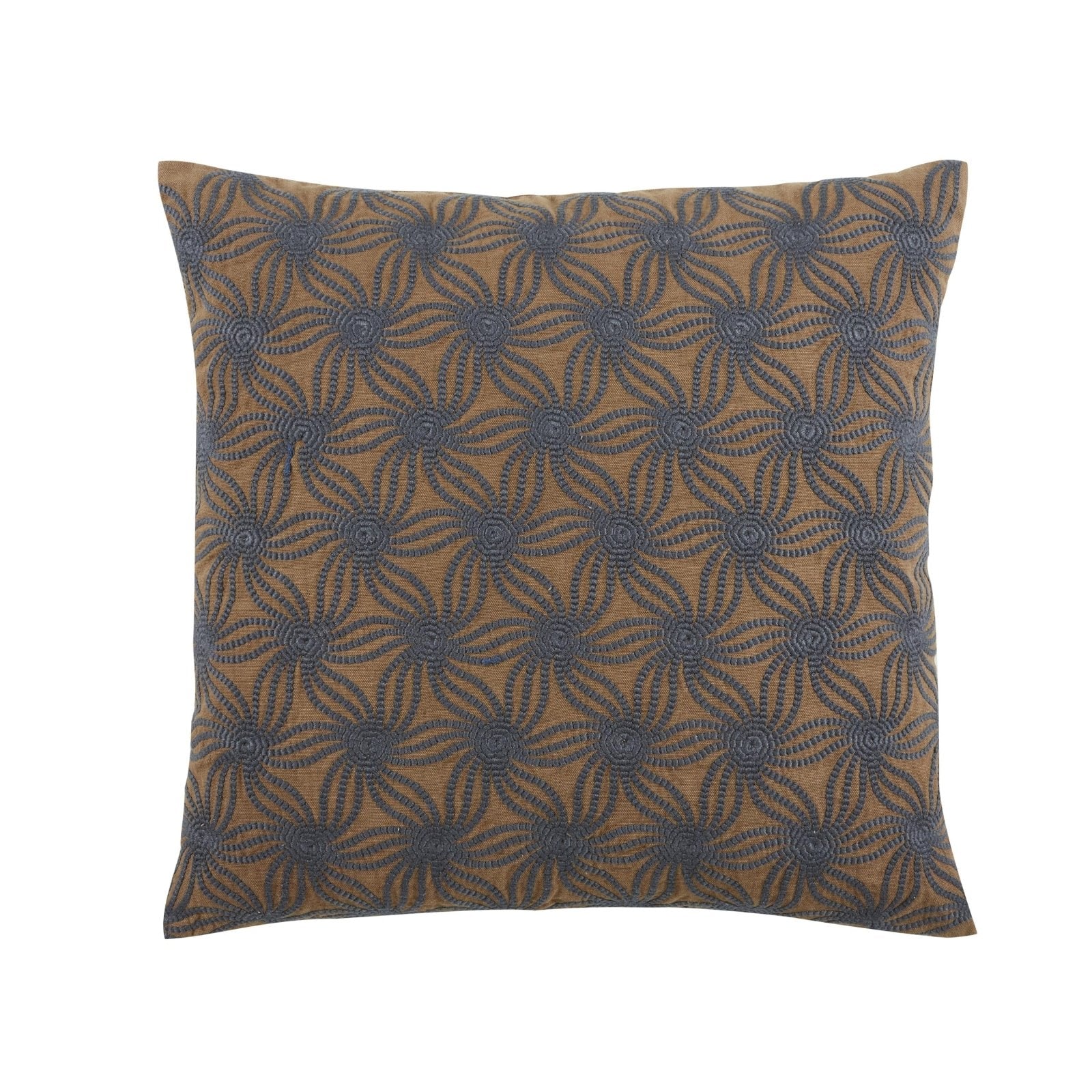 Kuddfodral i rostbrunt med broderat mönster i blått